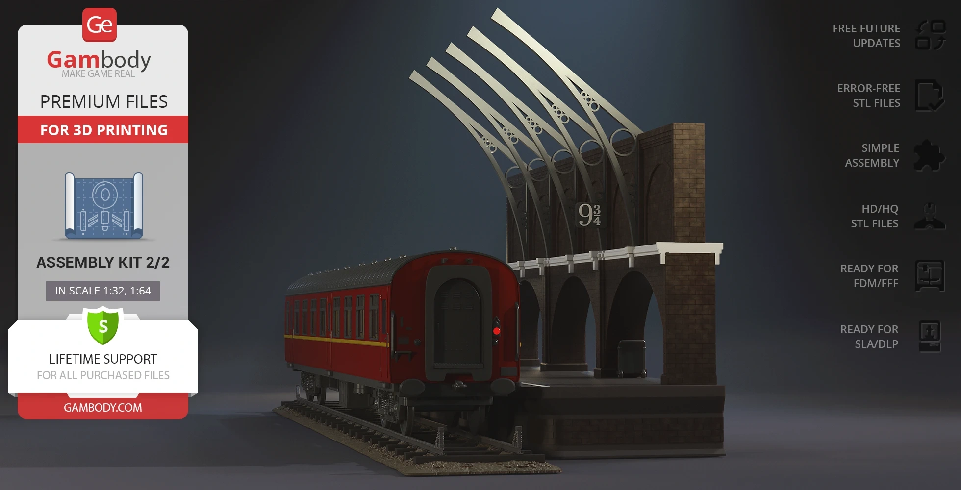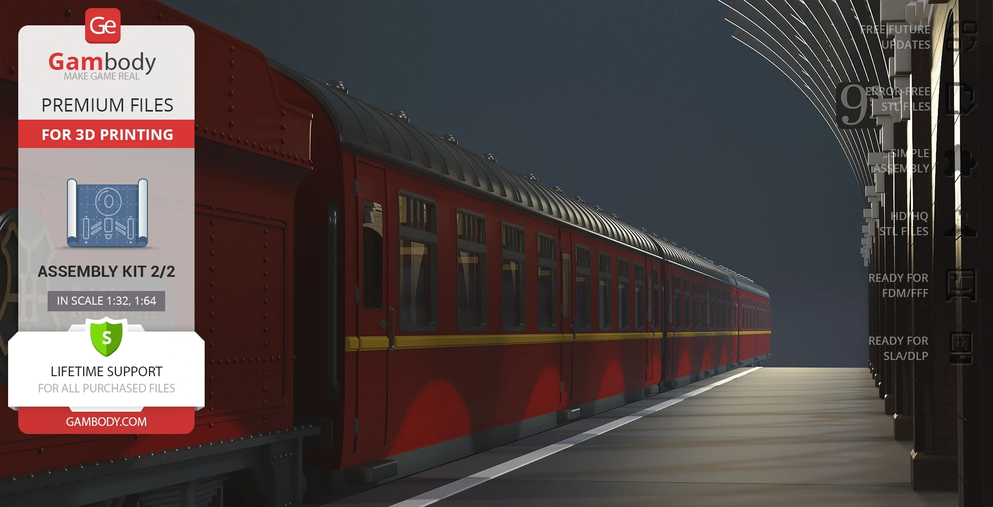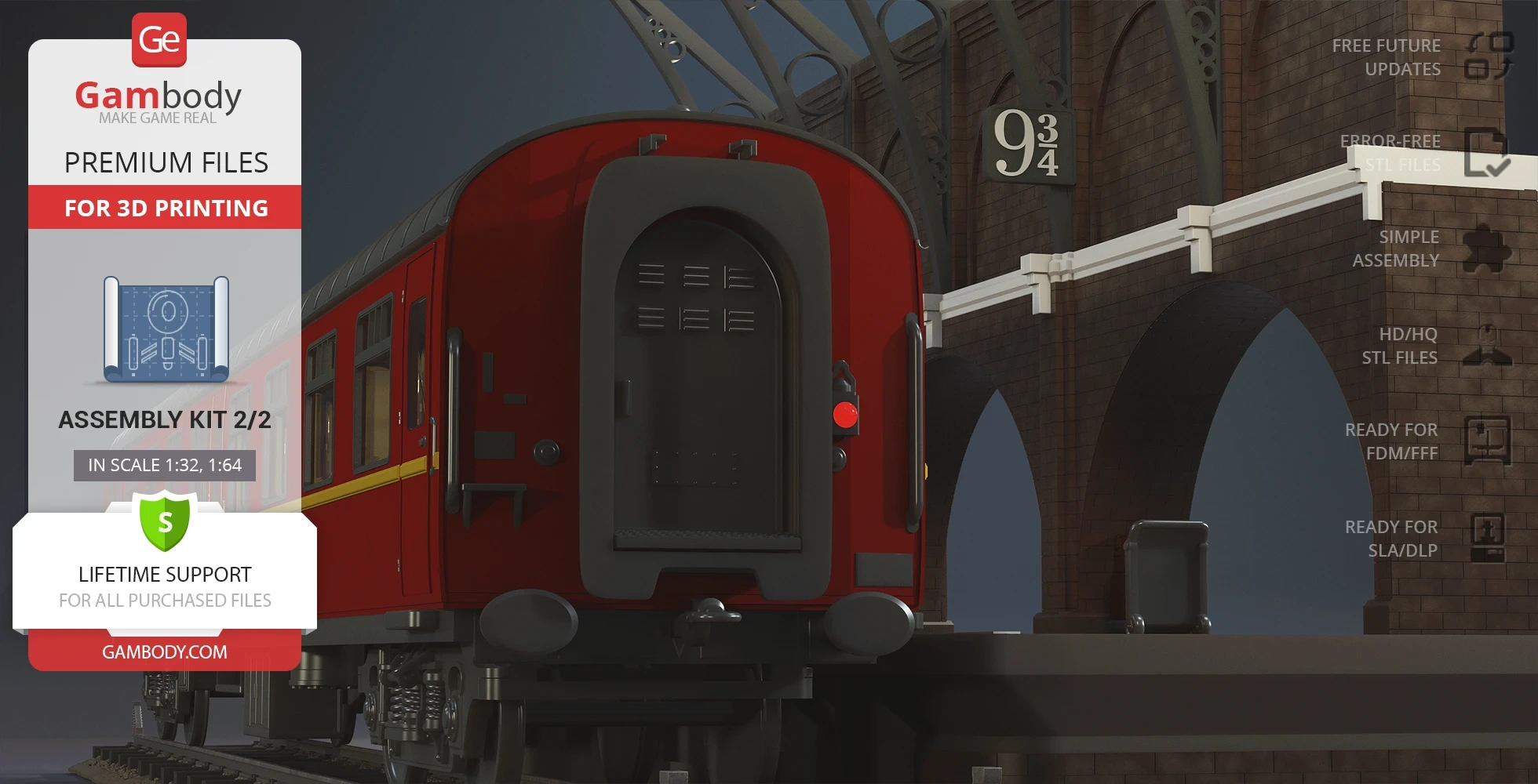 - 2 versions of Hogwarts Express Assembly Kit 2 STL files for FFF/FDM and DLP/SLA - files for all versions are available for download after the purchase;