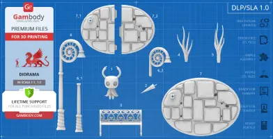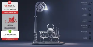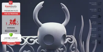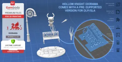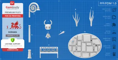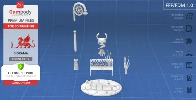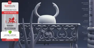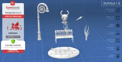 - STL files of high-poly Hollow Knight in Diorama diorama model for 3D printing consist of 34 files;