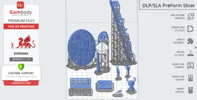 The STL files that this version comprises are pre-supported, hollowed out, and have drain holes where needed. Fully revised cutting that improves the way the assembly parts fit into average resin 3D printers. You may choose to print the STL files one by one or several at once, depending on the dimensions of your resin 3D printer's build plate. When slicing several STL files at once, the attachment layers (Platform Touch Shape) may overlap, but the supports must not come into contact. The assembly parts are connected using specially designed integrated connectors that fit securely into the corresponding slots. Optionally, for added strength and rigidity, the static connections can be glued together;