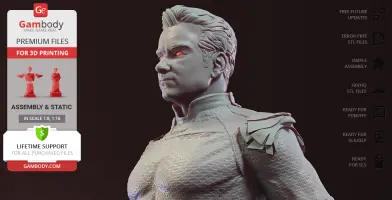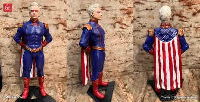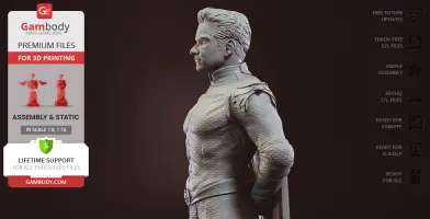 The Boys is an American original series that is not only an intricately knit cynical satire on the entire superhero genre but a daring exploration of what happens when superhumans from the glossy comic book pages abuse their powers. One of the most intriguing characters of the series is Homelander - the seemingly handsome and beloved by the crowd national hero and a blatant allusion to the original Superman. He is the embodiment of the American dream, the greatest superhero alive, the leader of The Seven superhero group and coincidentally the atrocious antagonist of the show. The viciousness of Homelander deeply impressed our contributing 3D artist and inspired him to depict the villain in this figurine for 3D printing, having spent circa 160 hours. Every muscle on the body of the Homelander 3D printing figurine was sculptured with the utmost attention. Homelander’s posture is perfectly straight and at attention, his facial expression is brimming with tough determination and a shade of cold-heartedness. The man’s arms are folded behind his back which makes his broad chest puff out even further. Homelander in his 3D printing guise is dressed in his trademark tight suit adorned with small eagle patterns. On his shoulders, dapper golden eagle-shaped epaulettes reside. Just like other parts of his attire, the belt of the “hero” and his high red boots are decorated with eagle imagery. The author of the figurine did not forget to add the highly detailed draped Stars and Stripes cape. The figurine can be displayed standing on a platform that resembles the triangular emblem of the Vought. Now the infamous anti-hero can join your superhuman 3D printing squad!