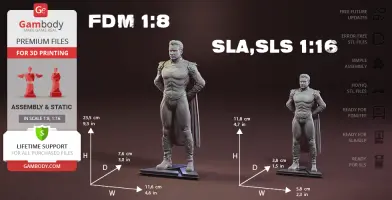 The model's scale was calculated from Homelander's actual height that is 1800 mm. The 3D printing figurine's chosen scale is 1/8 for the FFF/FDM version and 1/16 for the DLP/SLA/SLS versions.