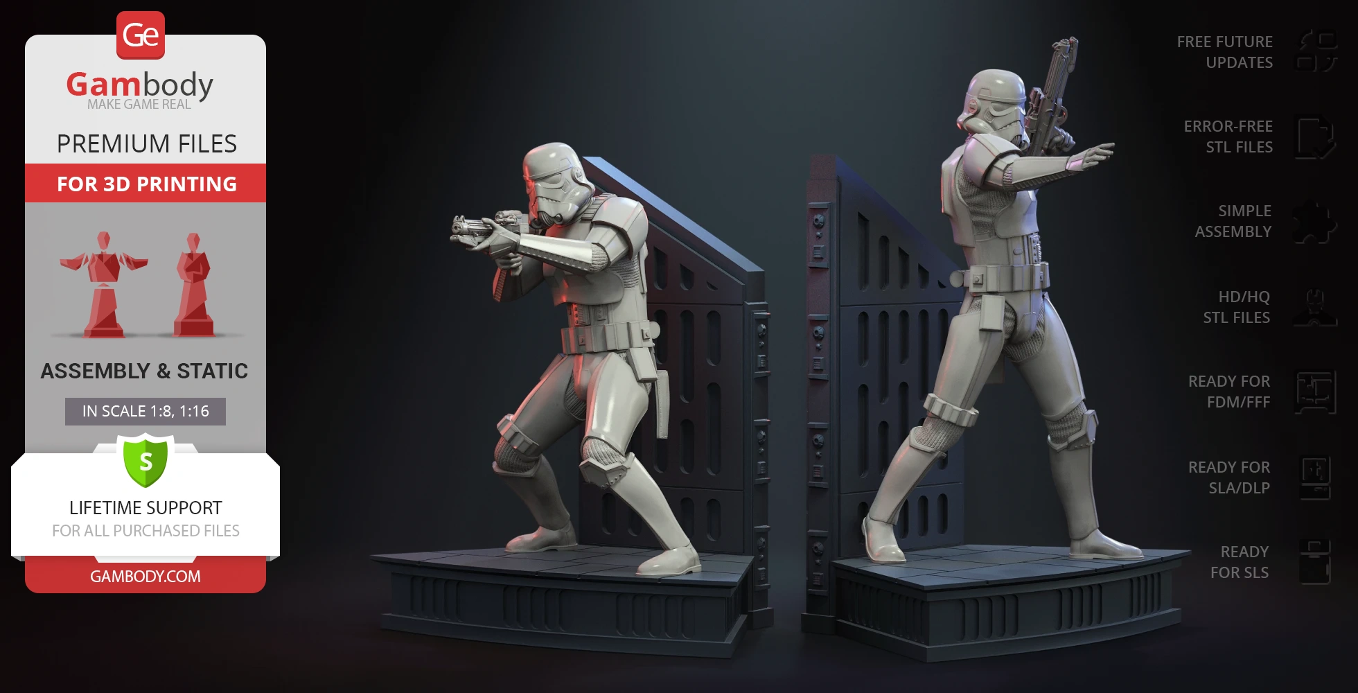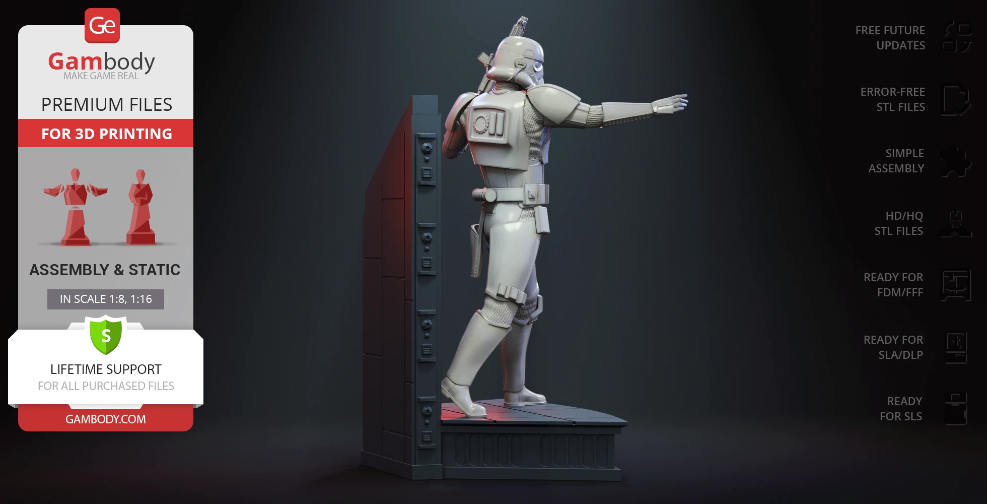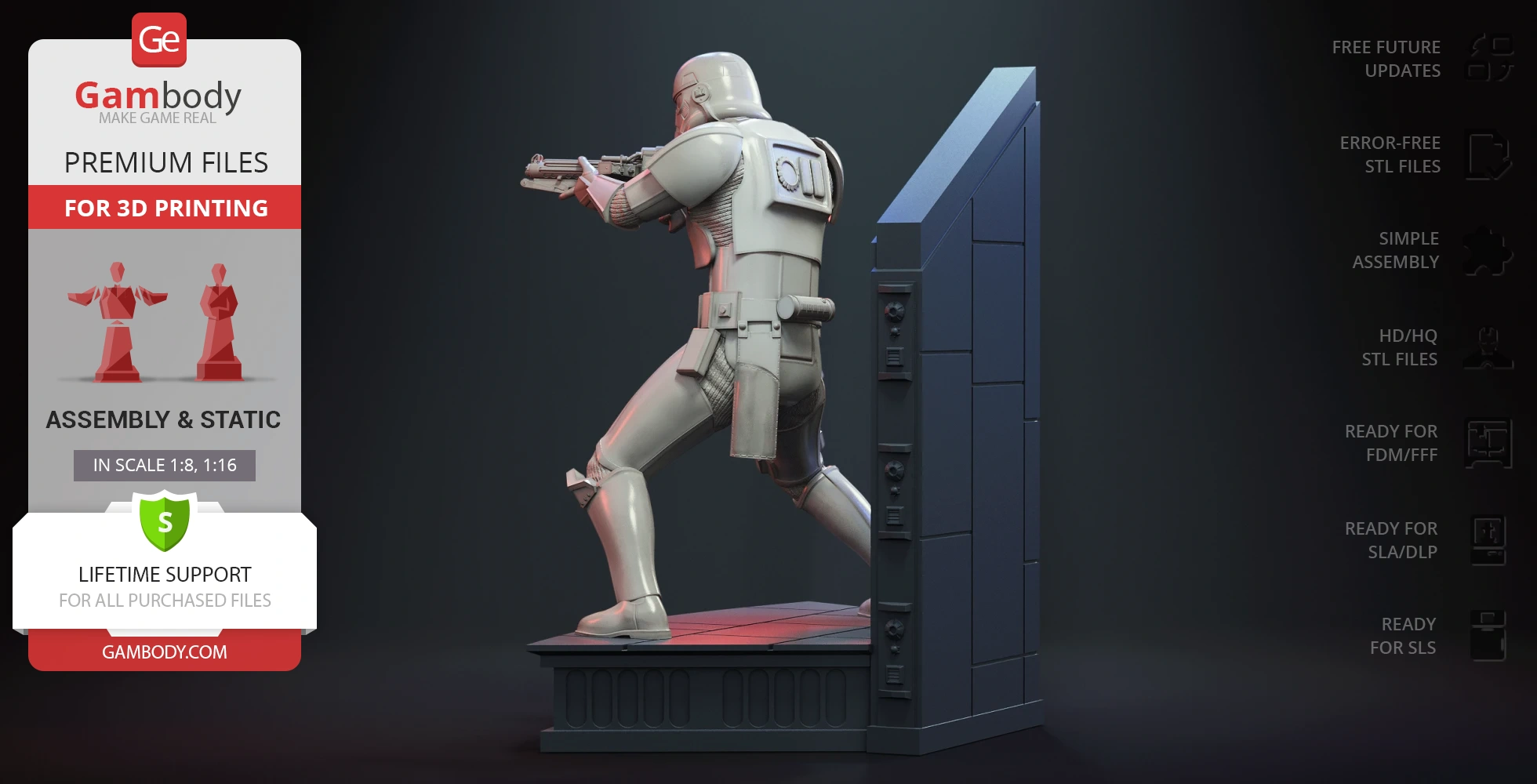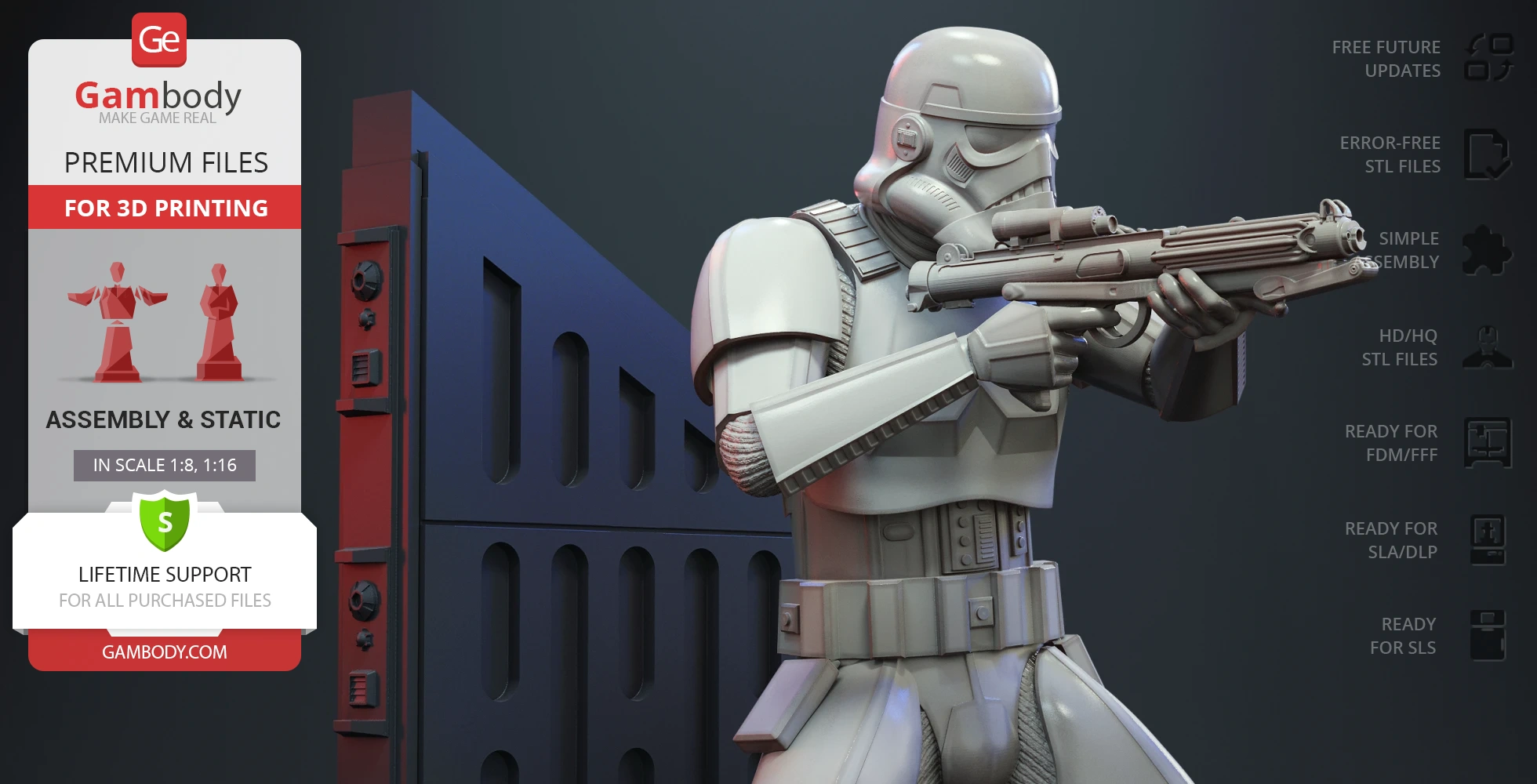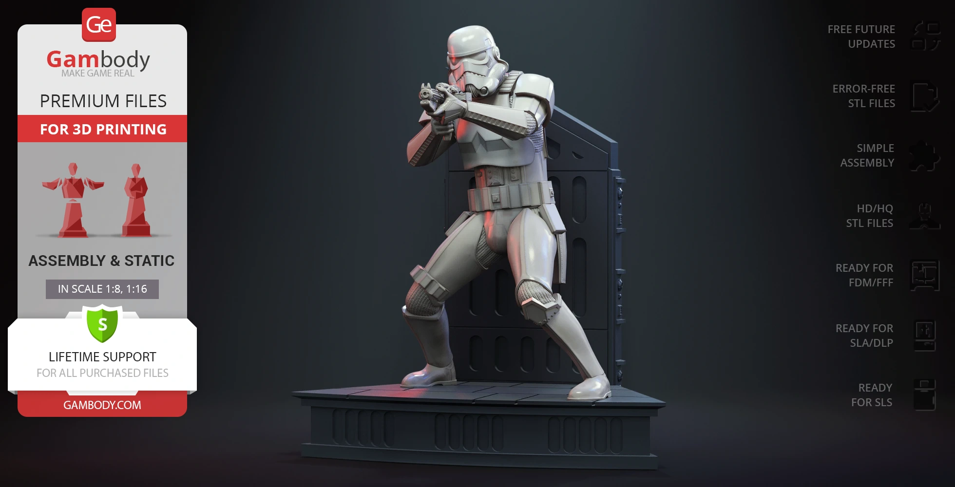 • STL files of high-poly Imperial Stormtrooper model for 3D printing consist of 106 files;