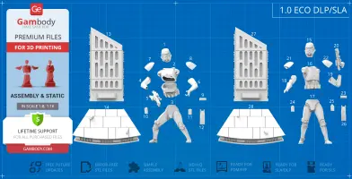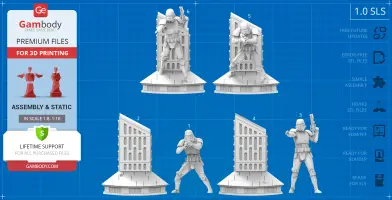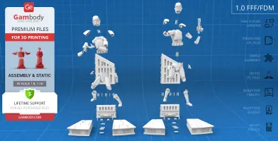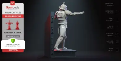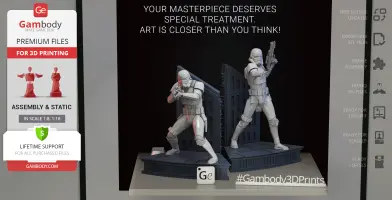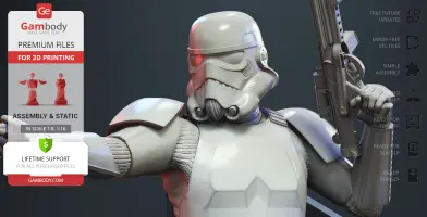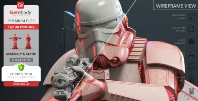 Watch the tutorial on how to assemble the 3D printed Imperial Stormtrooper from the provided 3D print files on Gambody YouTube channel.