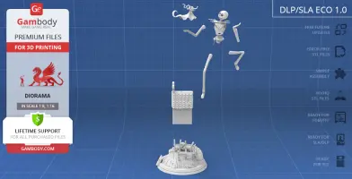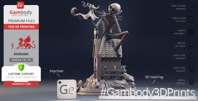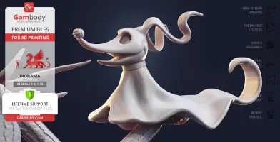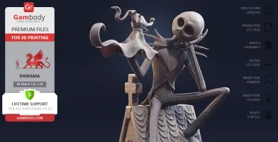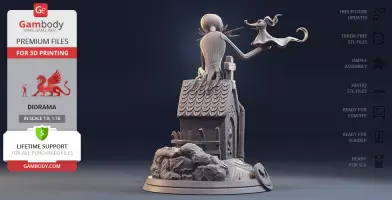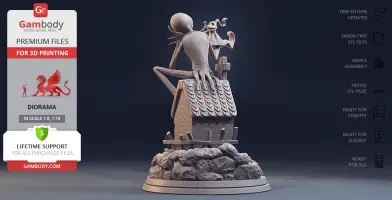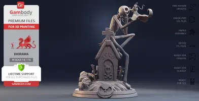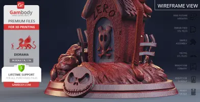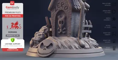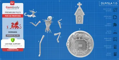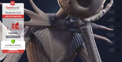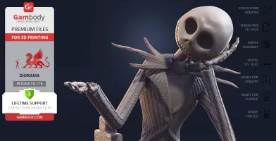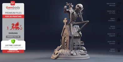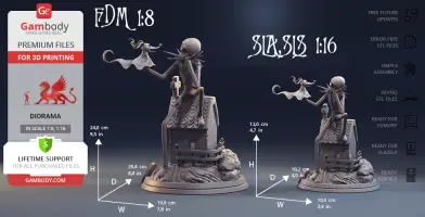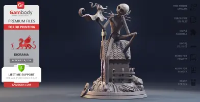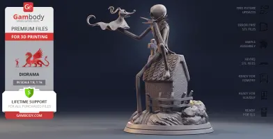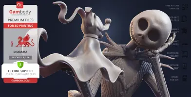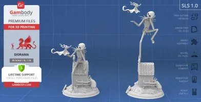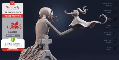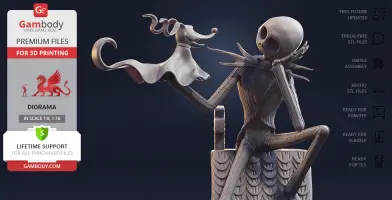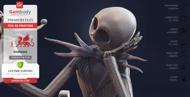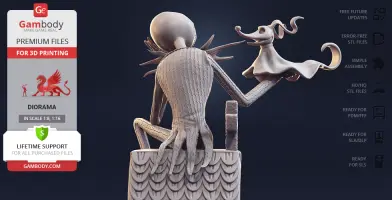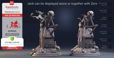 - STL files of Jack Skellington & Zero Models in Diorama for 3D Printing which consist of 43 parts;- 4 versions of files for this model for FFF/FDM, DLP/SLA, DLP/SLA Eco, and SLS;- High-poly detailed figurines of Jack Skellington & Zero;- Assembly Manual for FFF/FDM 1.0 and DLP/SLA 1.0 versions in PDF format;- Detailed settings that we provide as a recommendation for Cura , Simplify3D and Slic3r for the best print;- Full technical support from the Gambody Support Team.