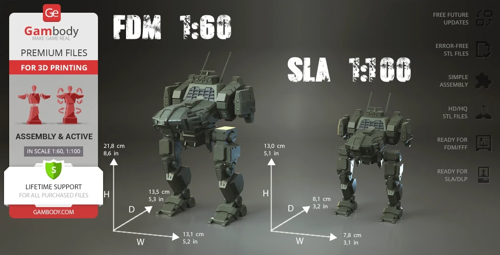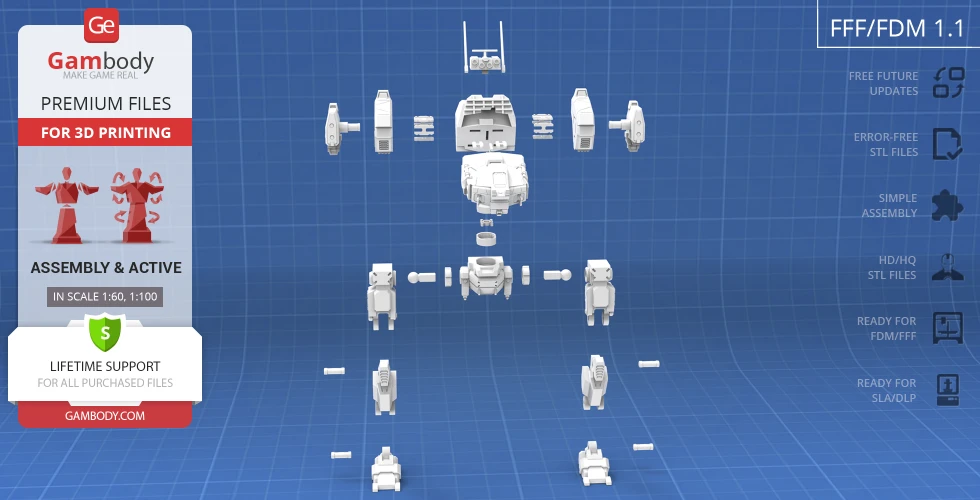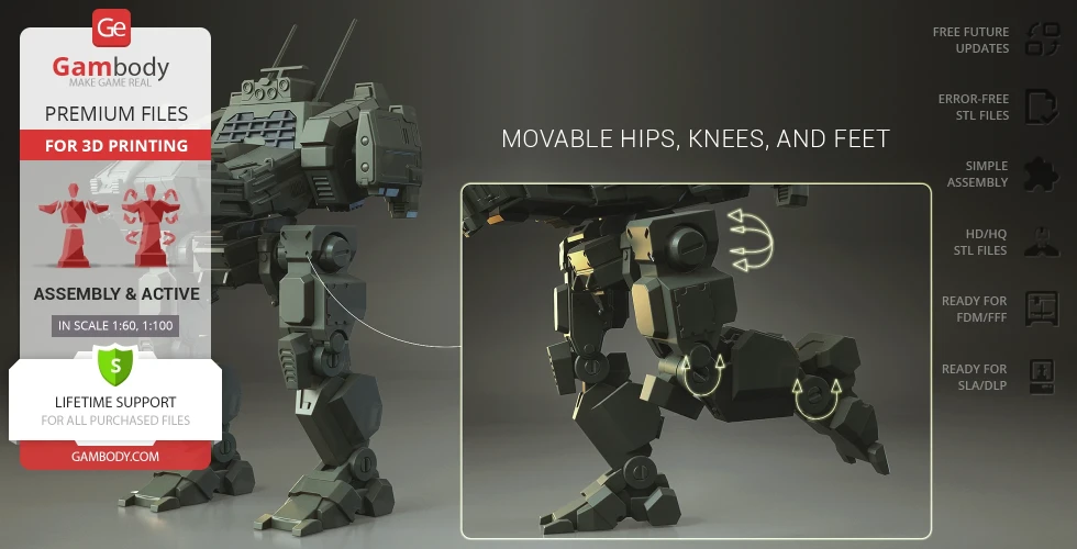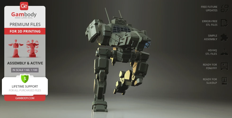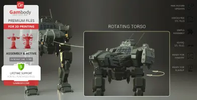 MWO Jenner for 3D printing is an active assembly model and its moderation and adaptation for different types of 3D printers took the Gambody team 30 hours in total.