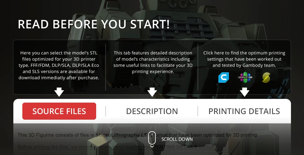 Before printing the files, we strongly recommend reading the PRINTING DETAILS section.