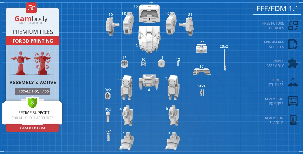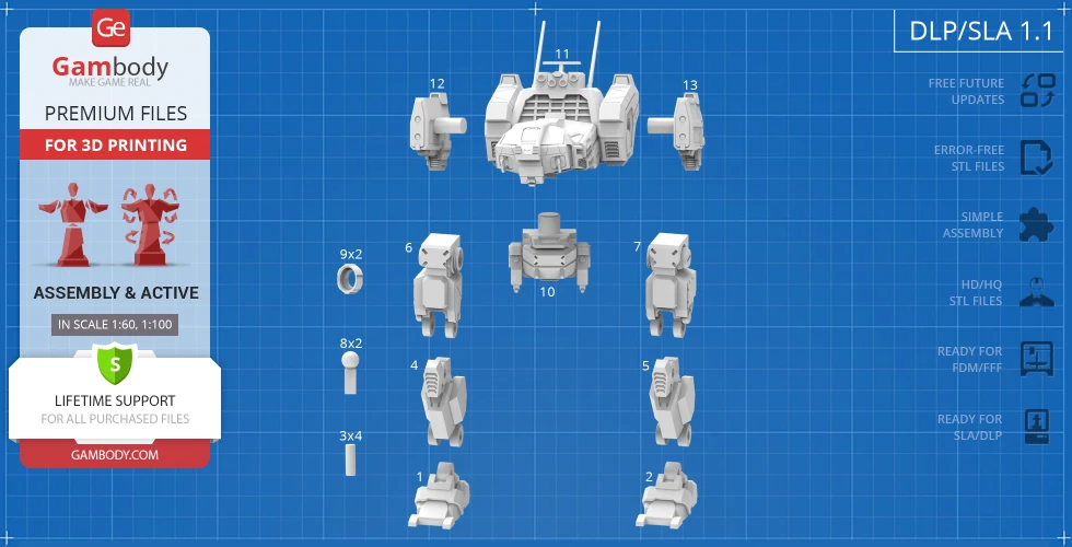 - FFF/FDM 1.1 & DLP/SLA/SLS 1.1 versions - the latest updated versions with fully reworked joints for filament and resin 3D printers accordingly.