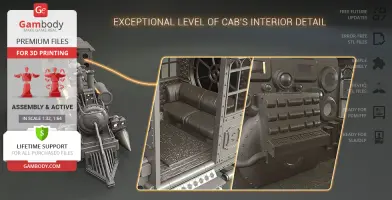 Thus, various special mechanisms were introduced into the model to make sure that the parts comprising the running gear, as well as the details of the frame, body, and the cab’sinterior, are both authentic and highly functional (please, see "Versions' specifications", "Assembly video" and photo preview slider).