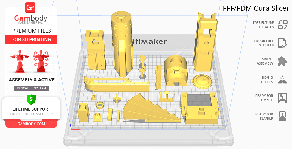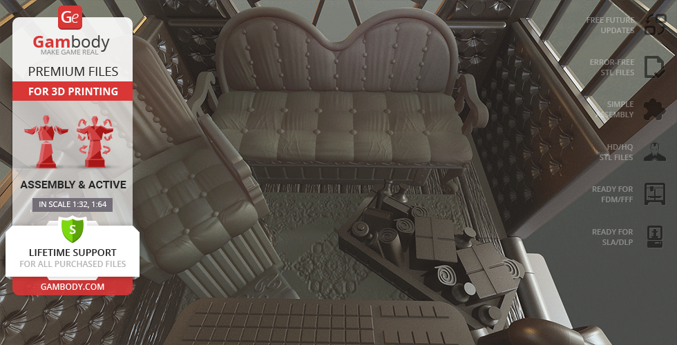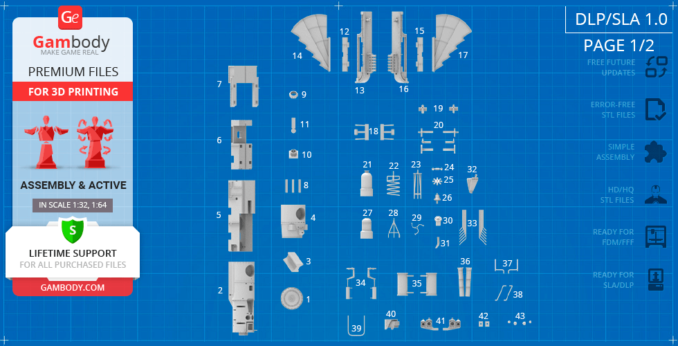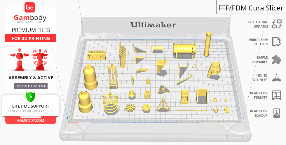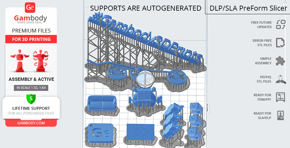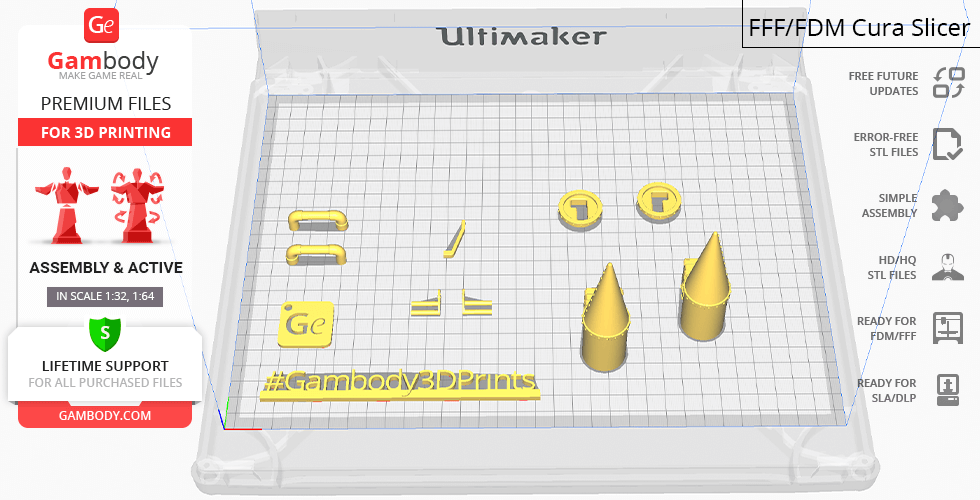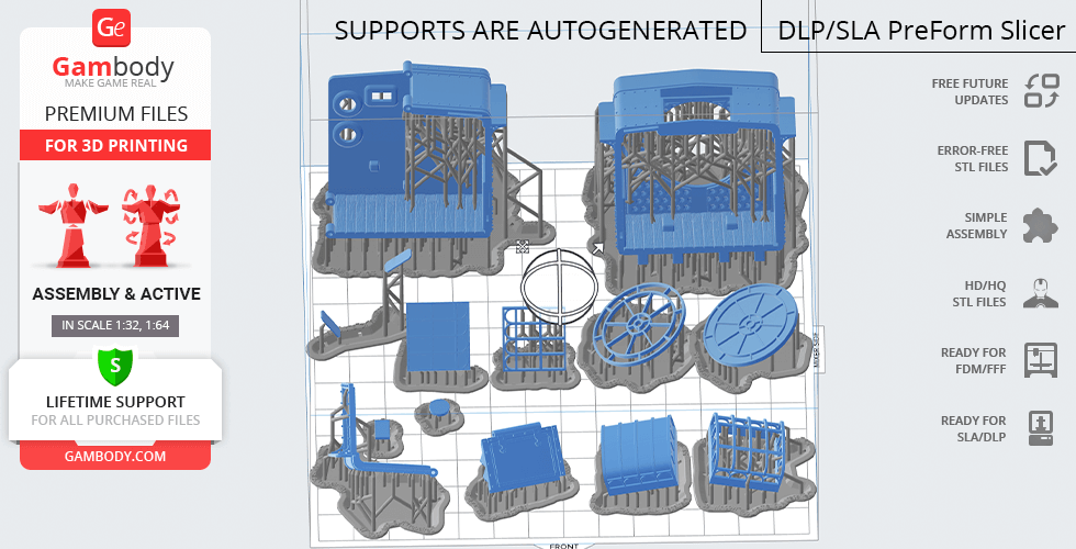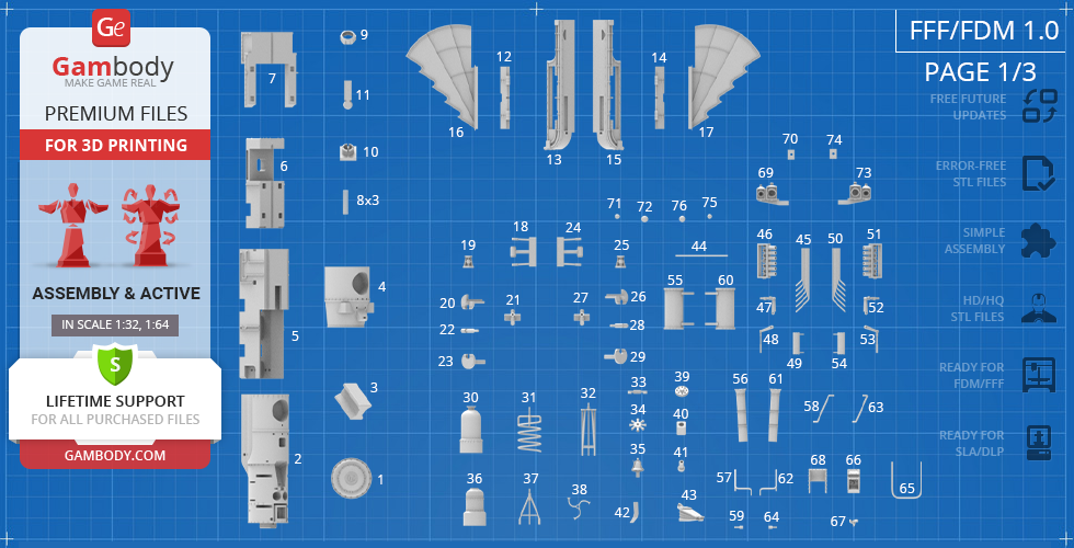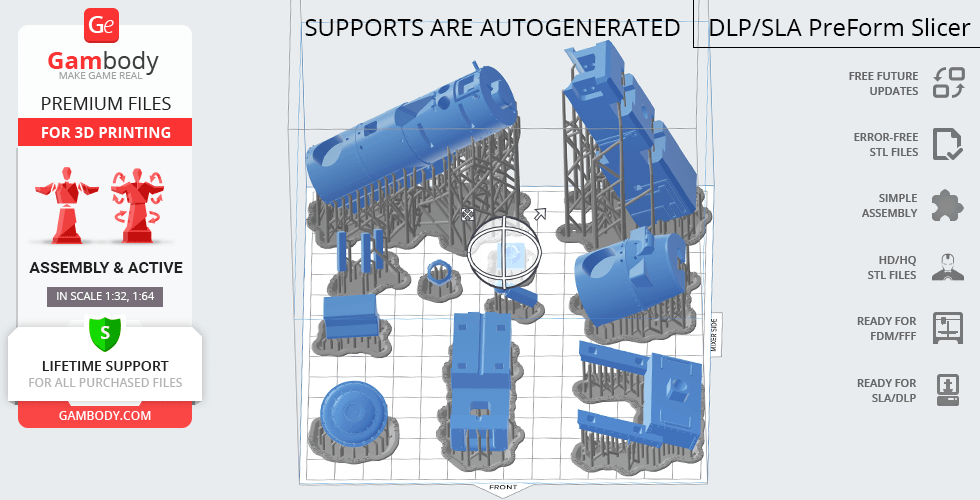 All assembly parts are provided in STL files of FFF/FDM version in recommended positions that were worked out in order to ensure the smoothness of the details’ surfaces after printing and so that the 3D printing beginners won't face difficulties when placing the parts on a build plate. We highly recommend that you get acquainted with the “Assembly video” and "Assembly Manual" before getting down to the Jules Verne Train Locomotive model.