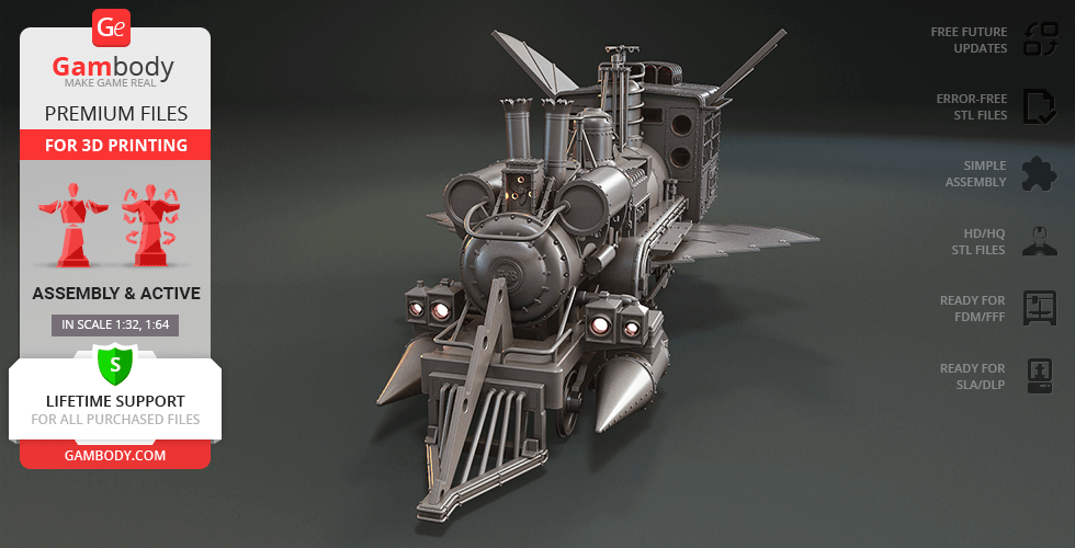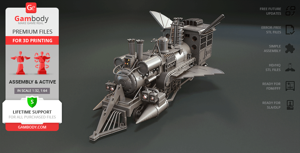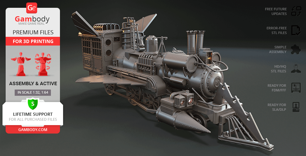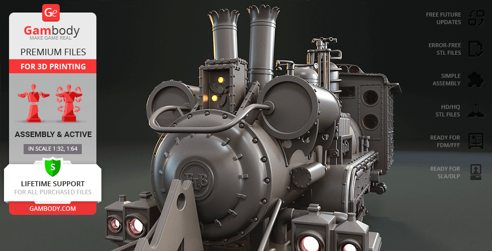 Watch the assembly video for Jules Verne Train Locomotive 3D Printing Model | Assembly + Action, and explore more tutorials, behind-the-scenes content, 3D printing timelapses, and painting guides on the official Gambody YouTube channel.