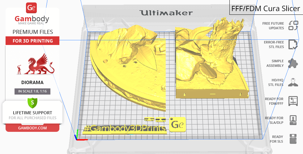 - Optimized part division minimizes support material and ensures smooth surface detail;