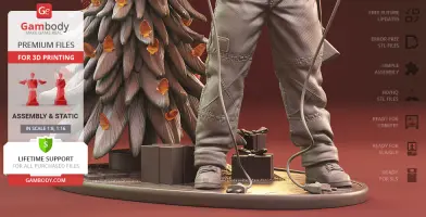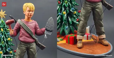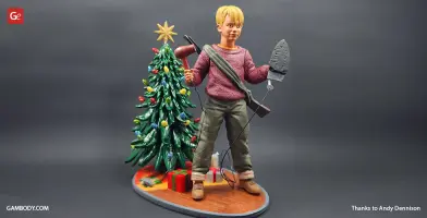 Kevin McCallister is an extremely resourceful kid whose adventures we warmly remember every time the Christmas season is right around the corner. In the course of the Home Alone movie that became a timeless holiday classic, the eight-year-old boy gets so frustrated with the neglectful and disregardful family that he wishes he would live all by himself. The following morning, Kevin wakes up just to discover that his whole family “magically” vanished or, as we all know, accidentally left him behind when hurrying to the airport. In charge of his own house now, Kevin comes up with a devious plan to fend off the bumbling “Wet Bandits” and stuffs every room with comically creative booby traps. The subsequent misfortunes of the burglars, Kevin’s triumph and the reunion of the McCallister family inspired one of our contributing 3D artists to create the Kevin 3D printing figurine and revive the pleasant sense of childhood nostalgia in it. The author depicted Kevin the way we know and love him - with a sly smirk on his face, plotting yet another ingenious trick. The boy is dressed in his famous knitted red sweater and cargo pants. Kevin equipped himself with everything he could find in the house - his older brother’s Daisy BB gun that is hanging on his back, blow dryers and an iron that will come in handy once the criminals arrive. The platform of the figurine perfectly recreates one of the rooms in the McCallister’s house - the elegantly decorated Christmas tree and a set of gift boxes are standing on a highly-detailed carpet, and even the planks of the room’s wooden floor can be seen under the boy’s feet. Now, the Kevin 3D printing figurine can become the craftiest defender of your collection!