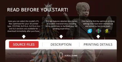 Kevin 3D Printing Figurine comes in 4 versions for each 3D printer type (FFF/FDM, DLP/SLA and SLS). Files for each version are available for download after the purchase.
