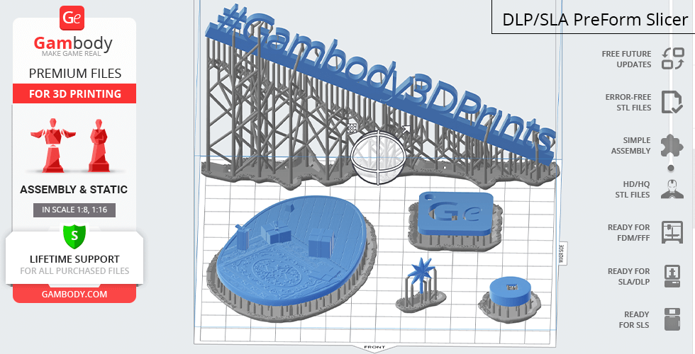- STL files of Kevin 3D Figurine for 3D printing which consist of 62 parts;- 4 versions of files for this model for FFF/FDM, DLP/SLA, DLP/SLA Eco and SLS;- High-poly detailed figurine of Kevin;- Assembly Manual for FFF/FDM 1.0 and DLP/SLA 1.0 versions in PDF format;- Detailed settings that we provide as a recommendation for Cura , Simplify3D and Slic3r for the best print;- Full technical support from the Gambody Support Team.