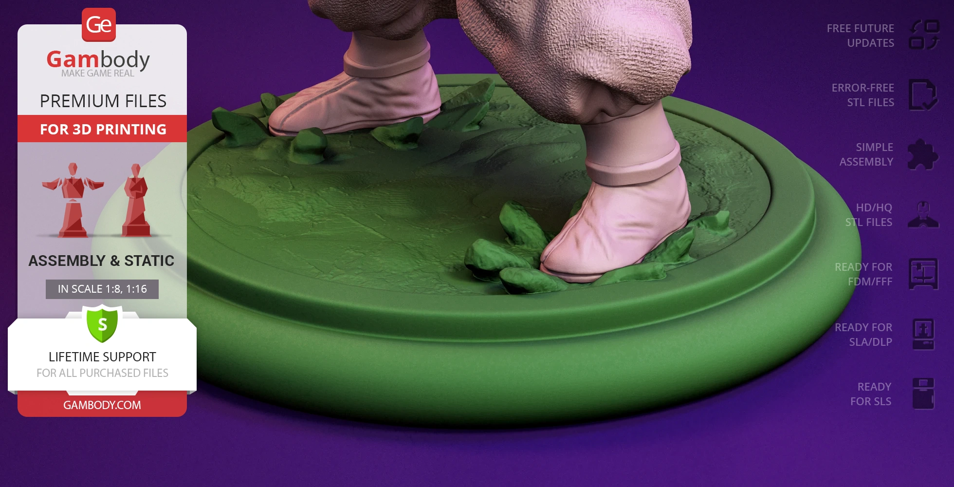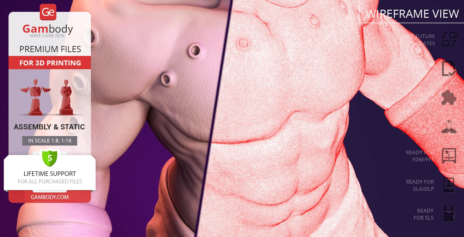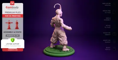 Our contributing 3D artist could not leave this bright personality without attention and presented a 3D printer model that recreates the essence of Kid Buu as well as possible. The aggressive posture of the hero and his malicious facial expression immediately make it clear that you are facing a very strong opponent. The distinctive features of Buu are its antenna, used for attacking victims, and rows of pores on both sides of his head, arms, and body, and the author did a good job on their depiction. The sculpting of the muscled body of the villain and its clothing consisting of baggy pants, light boots, arm covers and a belt showing the Majin symbol, show the big mastery of the creator for preserving proportions and details, as well as designing textures. Replenish your Dragon Ball collection with Kid Buu and enjoy both the quality of the files and the perfection of the design!