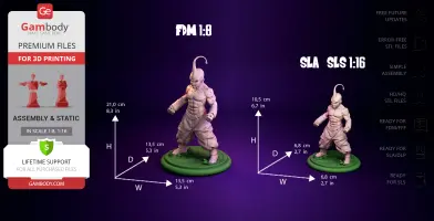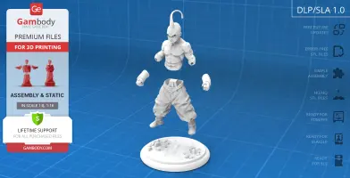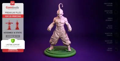 Kid Buu 3D Printer Files | Assembly includes 3 version(s) for the supported 3D printer type(s): FFF/FDM, DLP/SLA, SLS. Files are available for download after purchase.