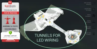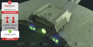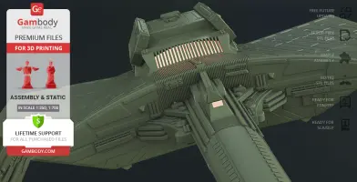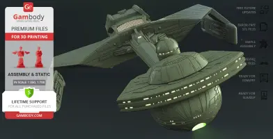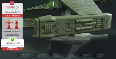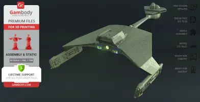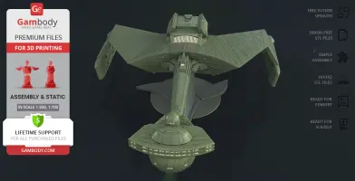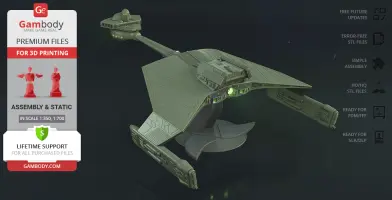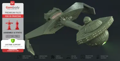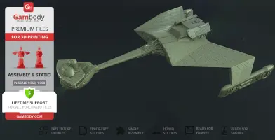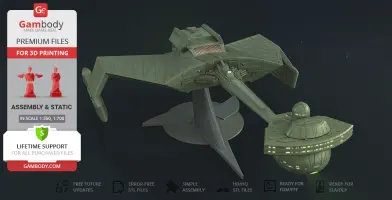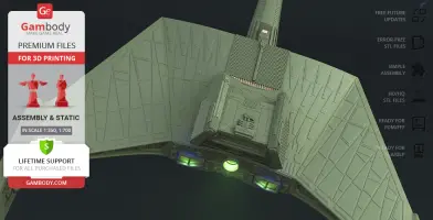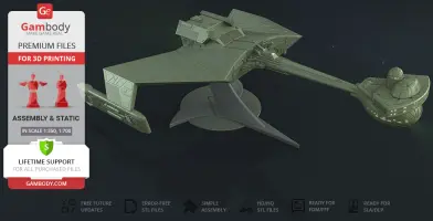 Klingon D7 Battlecruiser for 3D printing is a static assembly model and its moderation and adaptation for different types of 3D printers took the Gambody team 38 hours in total. The construction and proportions of the ship were thoroughly reviewed for it to look as authentic as possible and print out with a high level of detail.