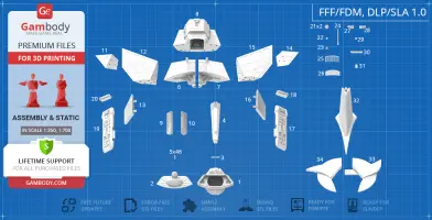 All assembly parts in the FFF/FDM 1.0 version are provided in STL files in recommended positions that were worked out in order to ensure the smoothness of the details’ surfaces after printing and that the 3D printing beginners won't face difficulties when placing the parts on a build plate. When downloading any model's file you will also receive "Assembly Manual" for FFF/FDM 1.0 and DLP/SLA 1.0 versions in PDF format. We highly recommend that you get acquainted with the “Assembly video” and "Assembly Manual" before getting down to the Klingon D7 Battlecruiser model.