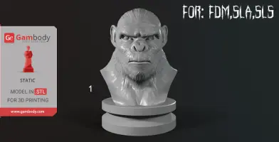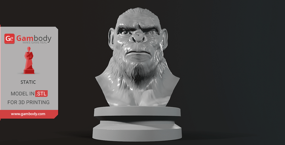 - STL files of Koba Monkey​ Bust​ for printing which consist of 2 parts.