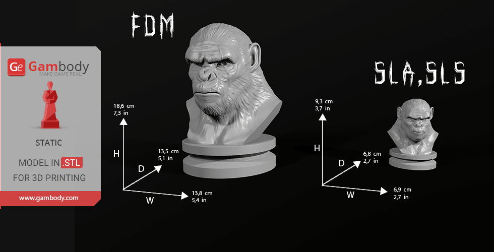 - High-poly detailed miniature of Koba Monkey Bust​ in two versions.
