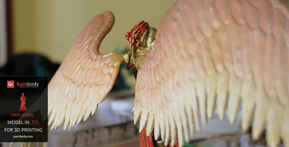 The modeling of Kayle 3D print took about 20 hours. The most difficult part was to create the wings, as the 3D modeler had to make sure that the model will keep its balance and would not fall on a level surface. The model is 353mm wide, 199mm tall, and 89mm deep. The wing sweep of the model measures 353mm. To make sure that the model will print accurately the modeler separated the wings from the body. Therefore, you will be printing two separate wings and the body of the character.