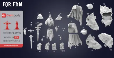 - The model includes multiple variants of the cloak, sword, and boots (divided and solid) to help you achieve the cleanest 3D printed result possible;