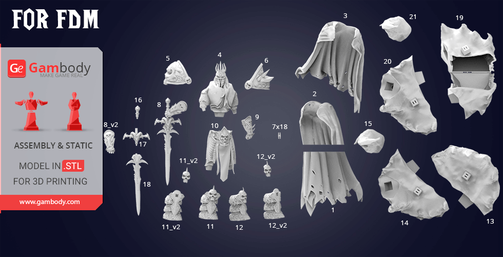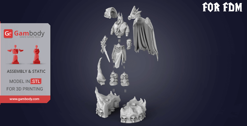 - STL files of high-poly Lich King Lord Of Terror 3D printer model consist of 37 files;