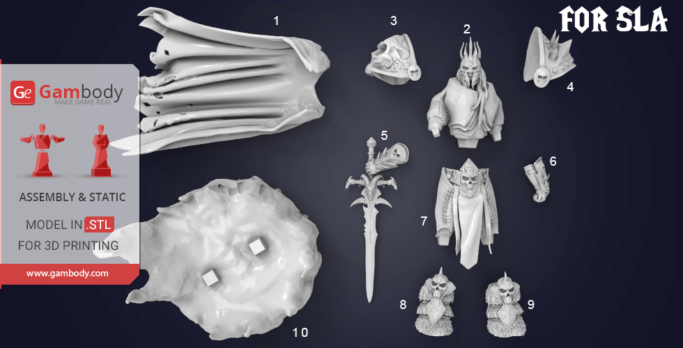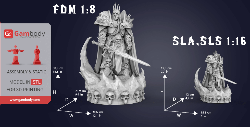 - The model is available in recommended scales of 1:8 for the FFF/FDM version and 1:16 for the DLP/SLA/SLS versions, based on the 2300 mm height of Lich King.