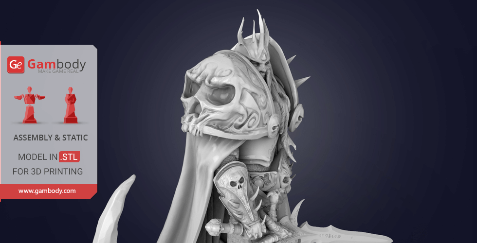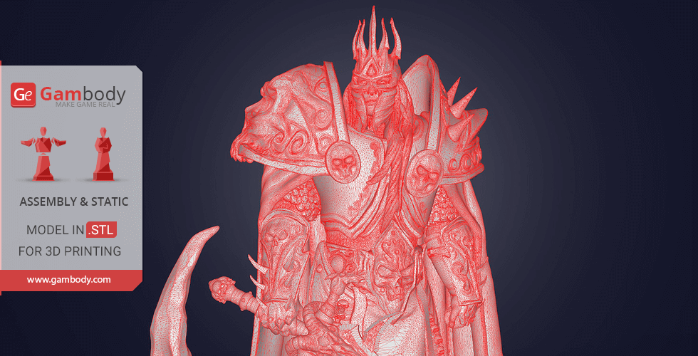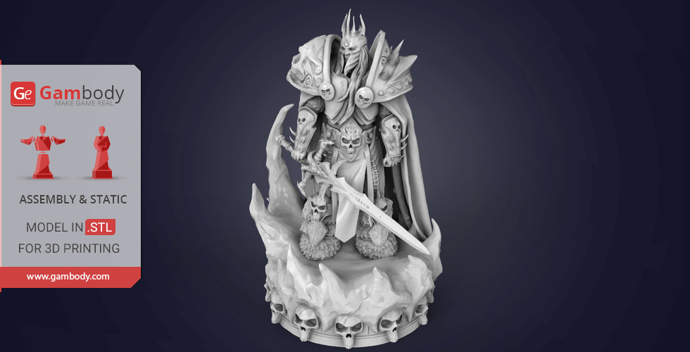 - A highly-detailed 3D printing design of the Lich King, capturing Arthas Menethil after his fateful transformation. The model is depicted in a menacing standing pose, holding the legendary Frostmourne;