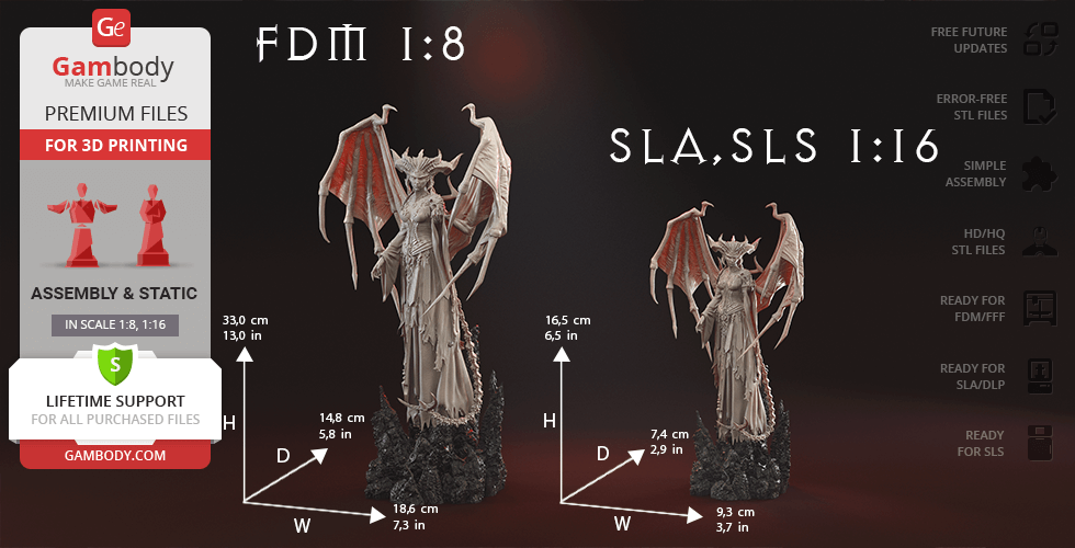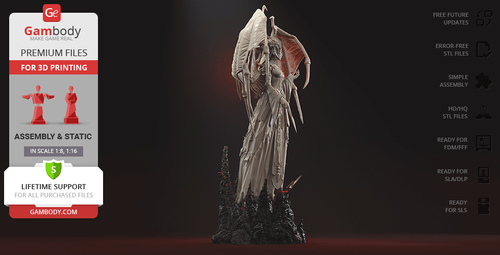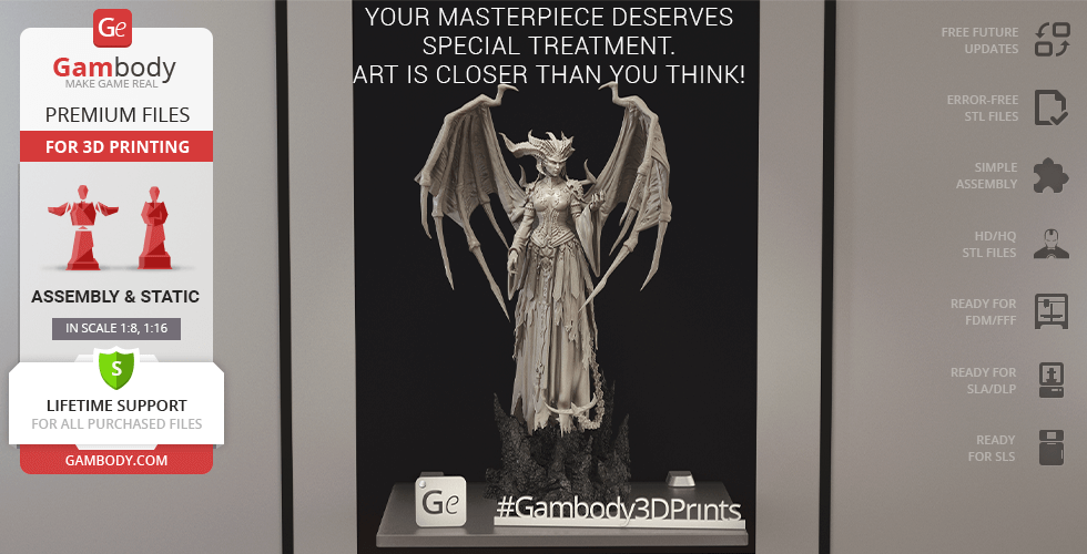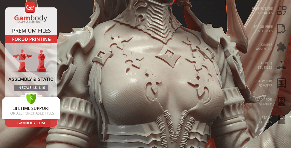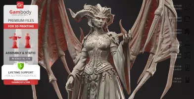 Watch the tutorial on how to assemble the 3D Printed Lilith Diablo IV model from the provided 3D Print Files onGambody YouTube channel.