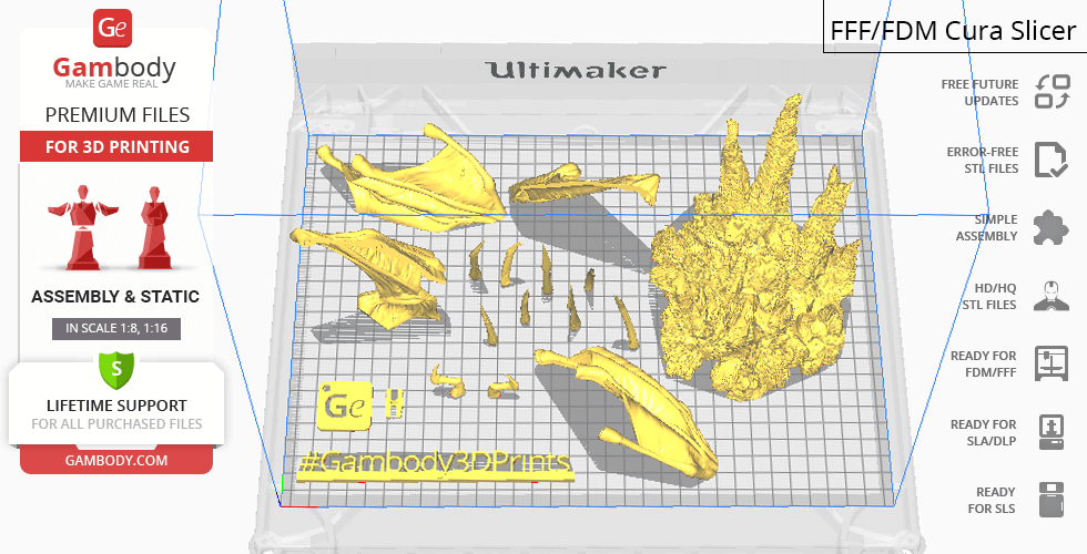 - The model is available in recommended scales of 1:8 for the FFF/FDM version and 1:16 for the DLP/SLA/SLS versions.
