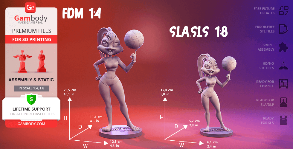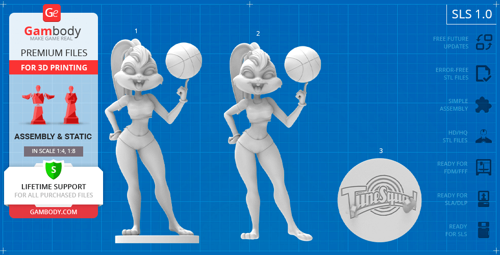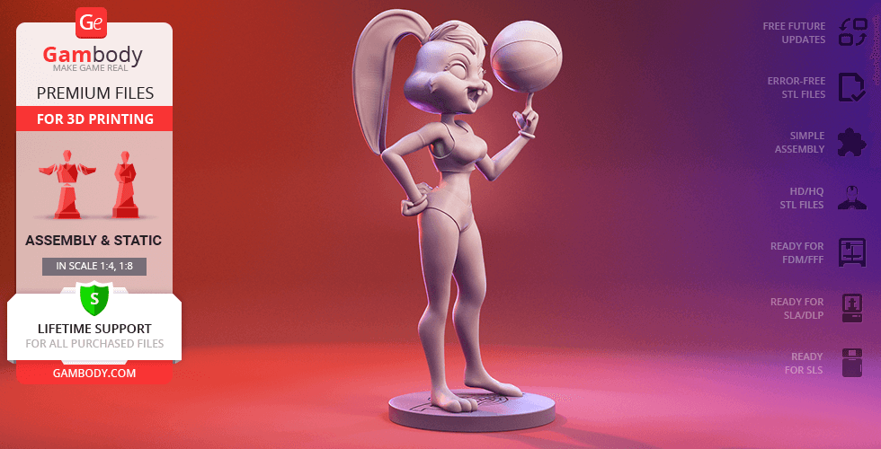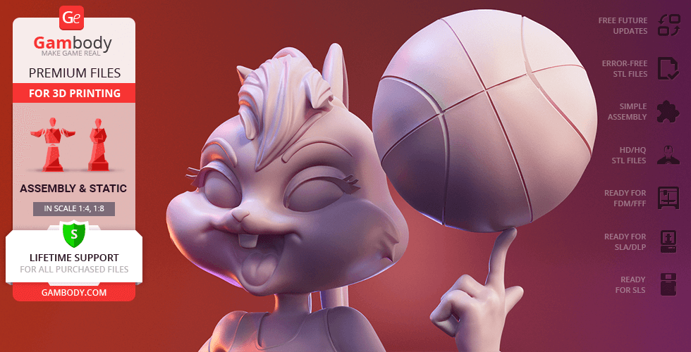 In the course of the iconic 1996 live-action/animated sports film Space Jam, the self-reliant female bunny bursts through the doors of the Looney Tunes gym, earns a place on the Tune Squad and charms the famous Bugs Bunny. Although Lola was first introduced as Looney Tunes character through Space Jam film, the charming bunny quickly became a fan favourite proving to be an extremely talented basketball player and trusty teammate. Since then, the highly athletic Lola Bunny has been an integral part of the Looney Tunes and now finally becomes a part of Gambody’s 3D printing squad!