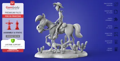 - STL files of Lucky Luke 3D Figurine for 3D printing which consist of 47 parts;