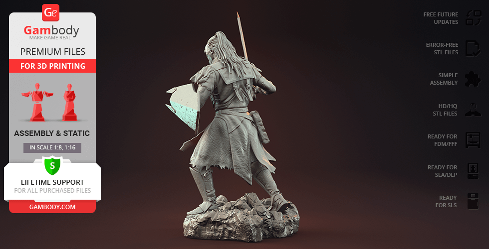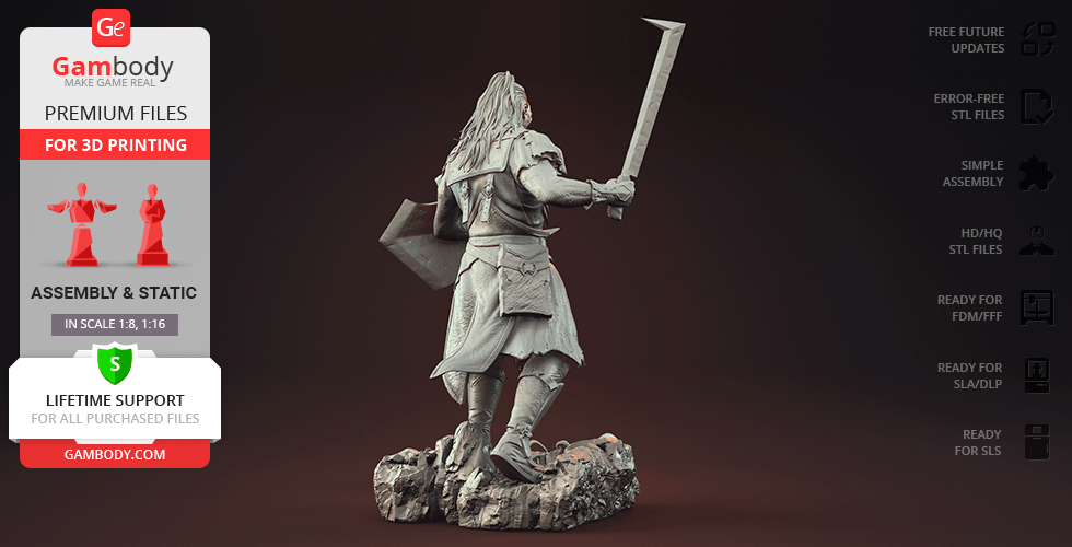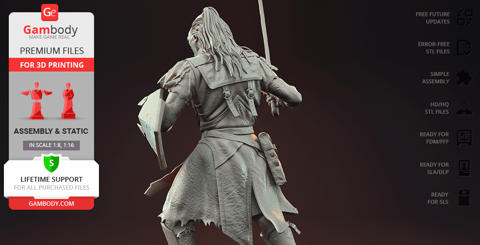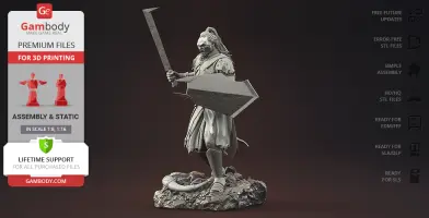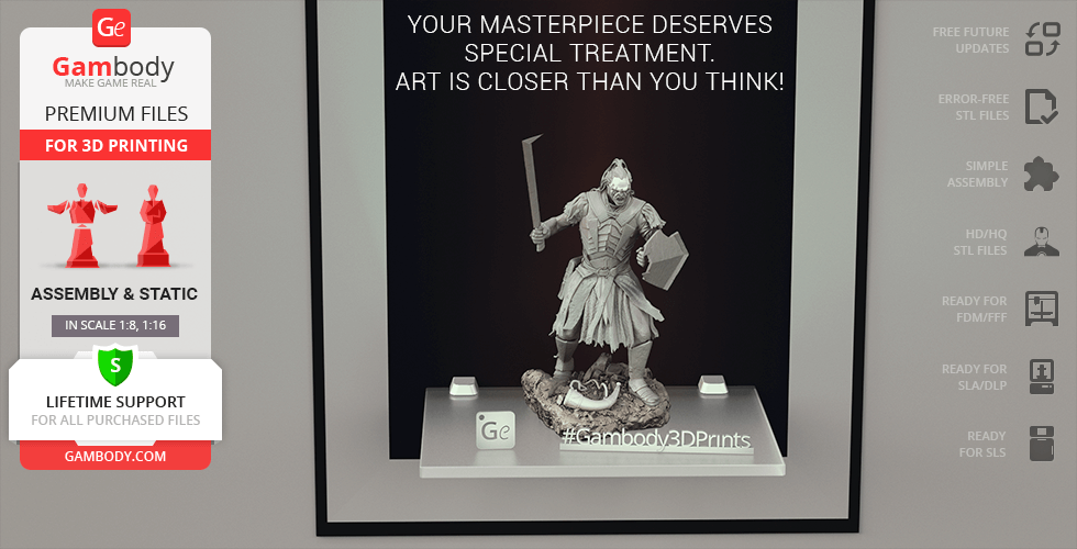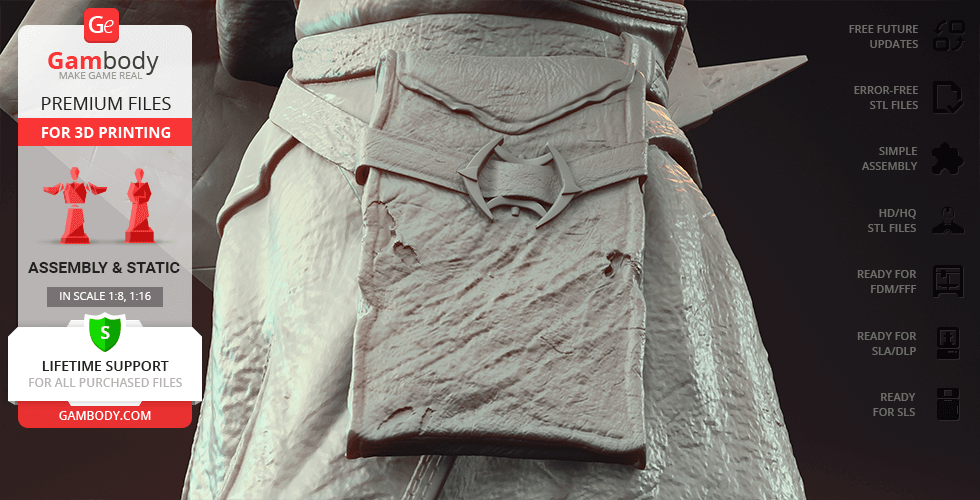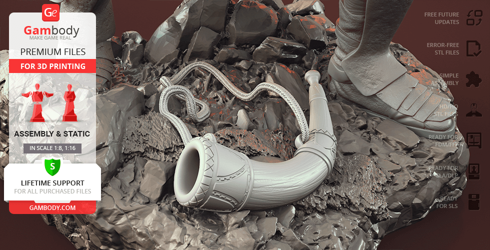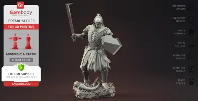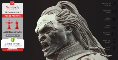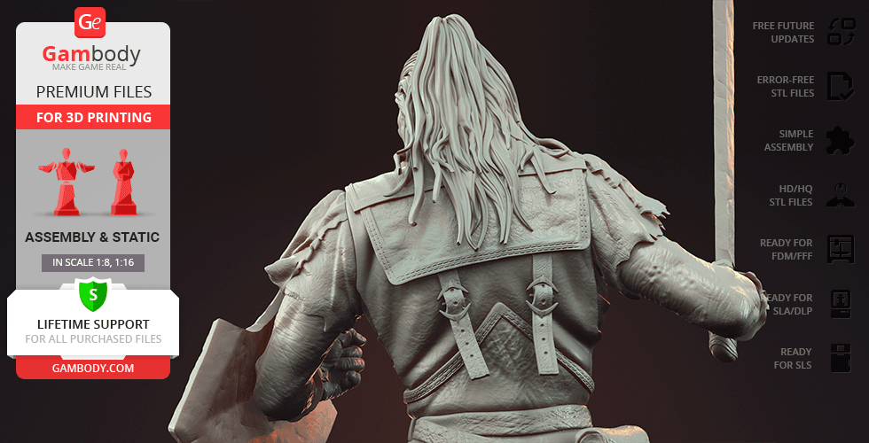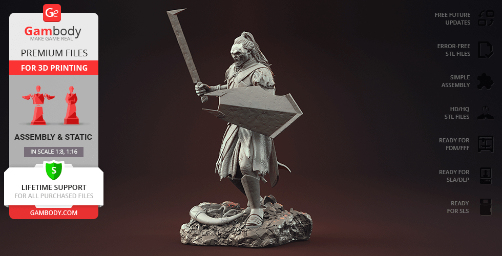 The Lurtz 3D printer model is filled with the warrior spirit and dangerous sharp edges. The Uruk with stunning likeness is dressed in layers of tattered leather and plates of armour that almost look like a part of his torso. His weapons of choice are a hooked scimitar and a bladed shield that once almost cost Aragorn his life. Many interesting details are hidden in the model's design, so make sure you print it to unravel more!