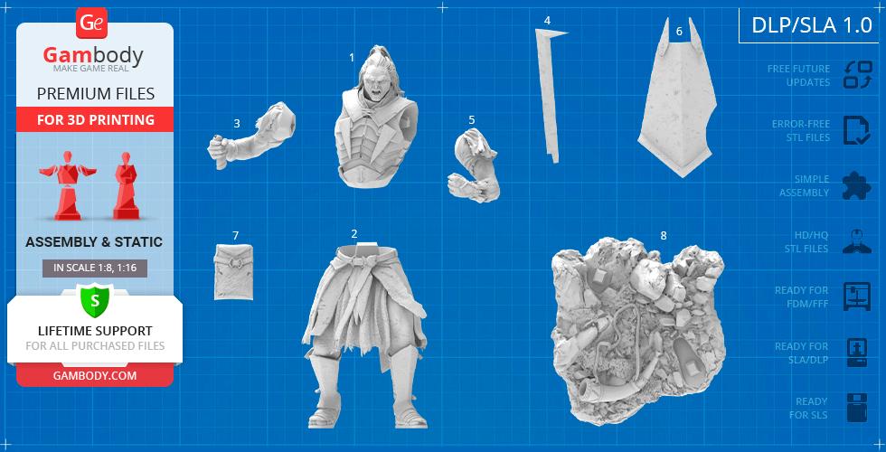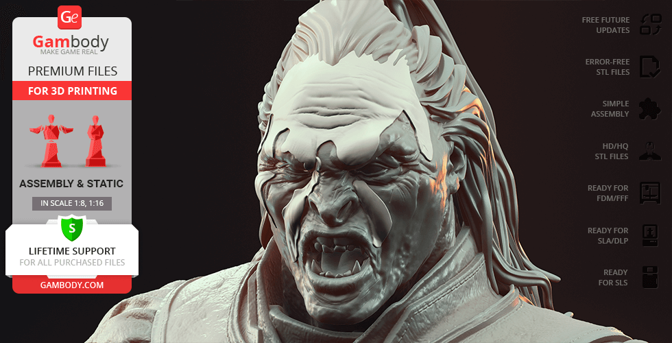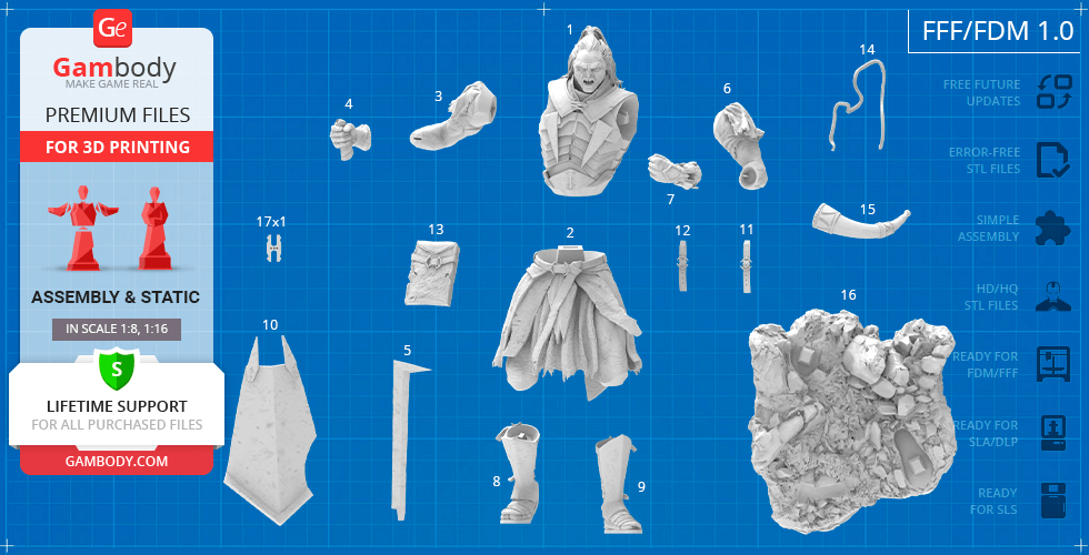 - STL files of high-poly LOTR Lurtz 3D printing design consist of 36 files;