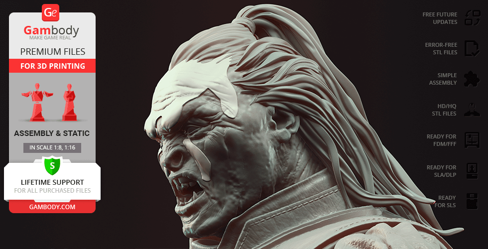 Watch the tutorial on how to assemble the 3D printed Lurtz model from the provided 3D Print Files on Gambody YouTube channel.