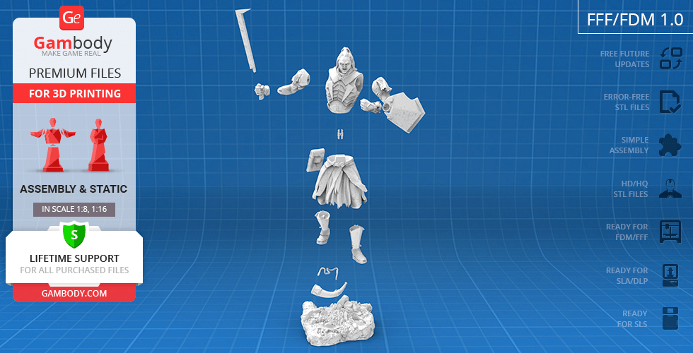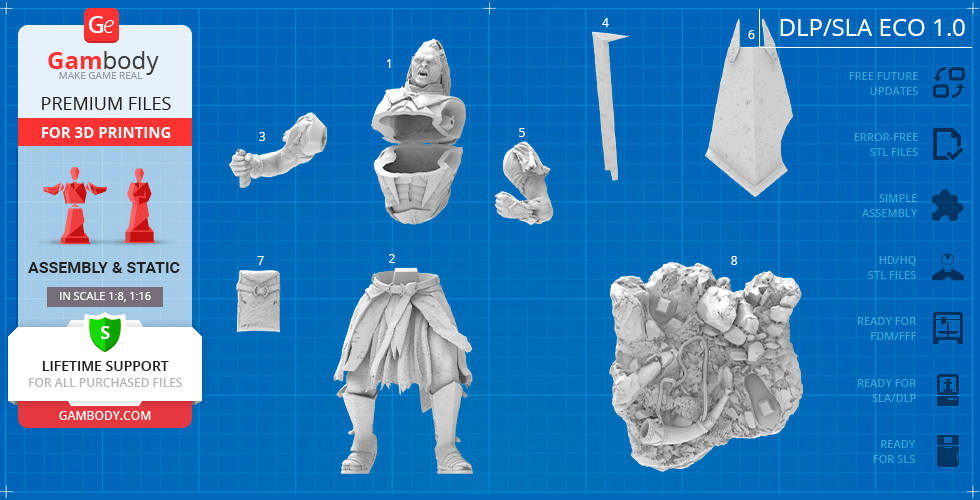 - The model is available in recommended scales of 1:8 for the FFF/FDM version and 1:16 for the DLP/SLA/SLS versions, based on the 1930 mm height of Lurtz.