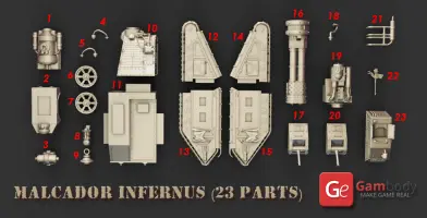 With an ancient design, Marlcador Infernus’ peak of production was during the Great Crusade as a variant pattern of the Flame Assault Tank. Many tanks have rolled off the production line, being used by the armed forces in battles.