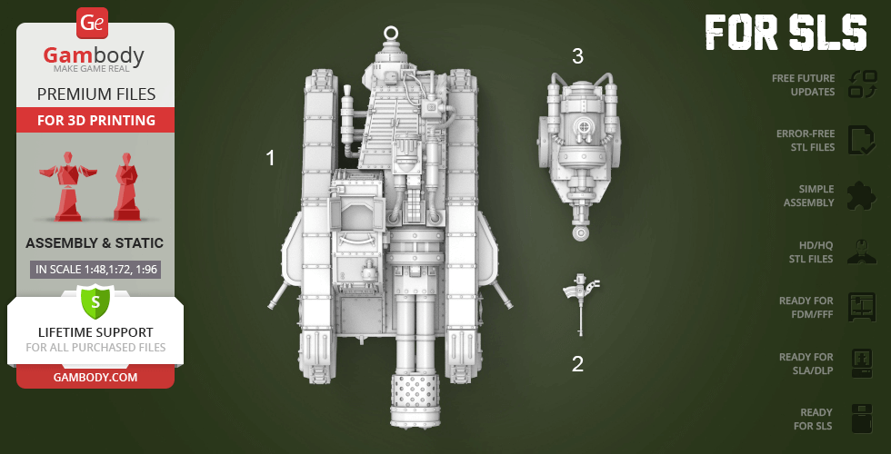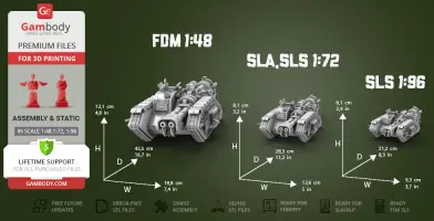 DLP/SLA/SLS version 1:72 Scale dimensions:After being printed will stand - 81 mm tall, 126 mm wide, 283 mm deep;