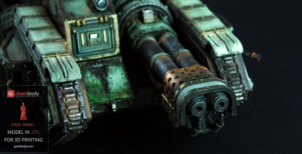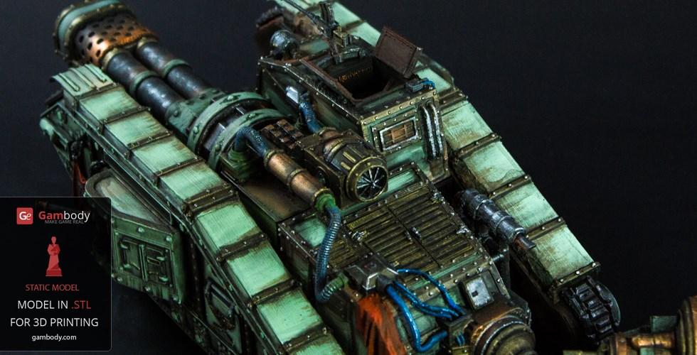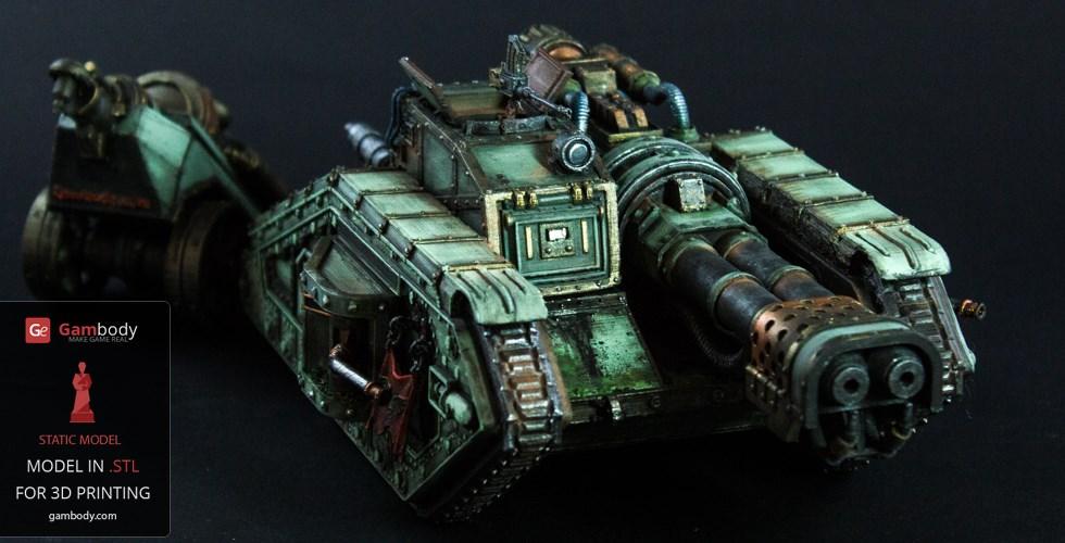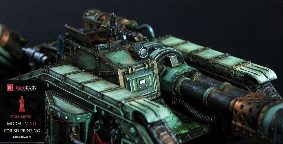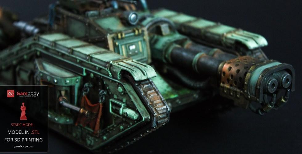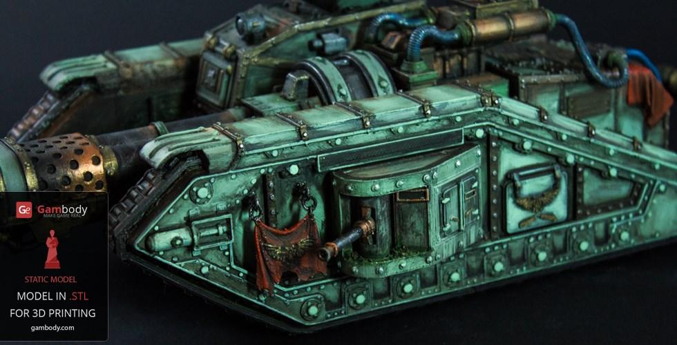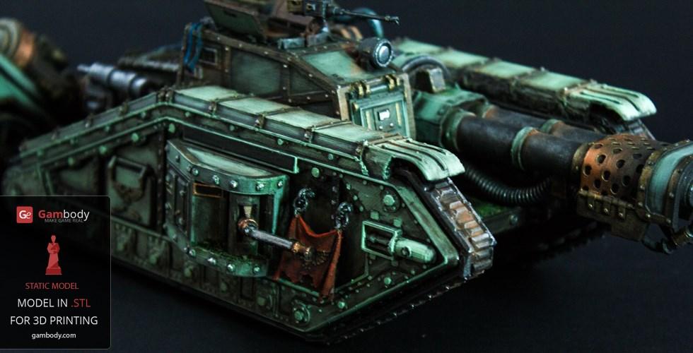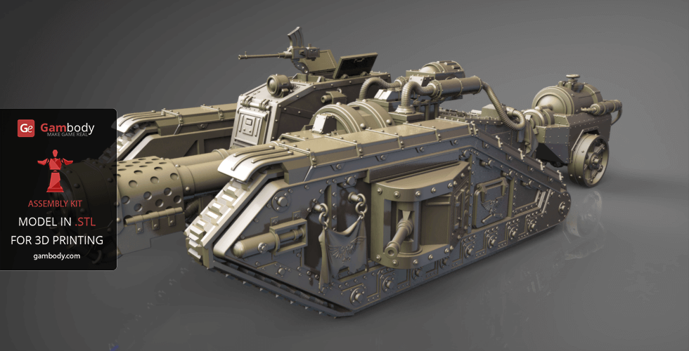 Flamethrower Tank model for 3D printing is shaped according to the tank with the same name that appears in the widely known and played 40k war video game. The tank is included in the Imperial armed forces, although only in the second-line arsenal.