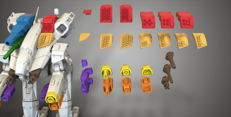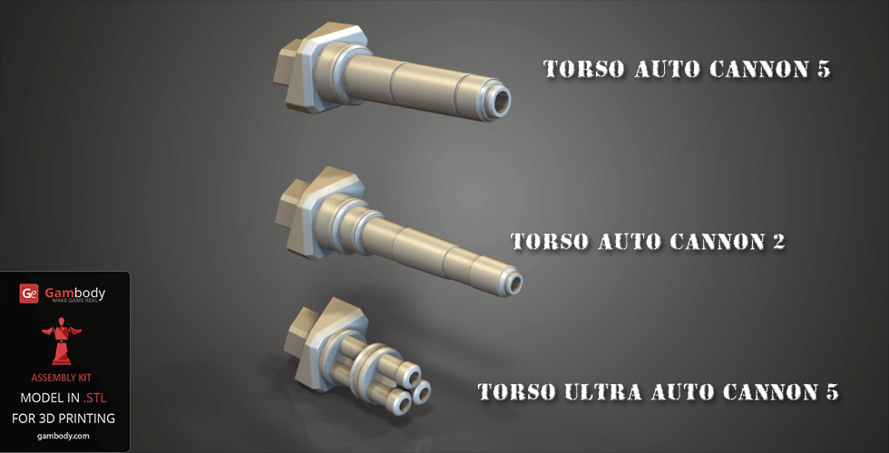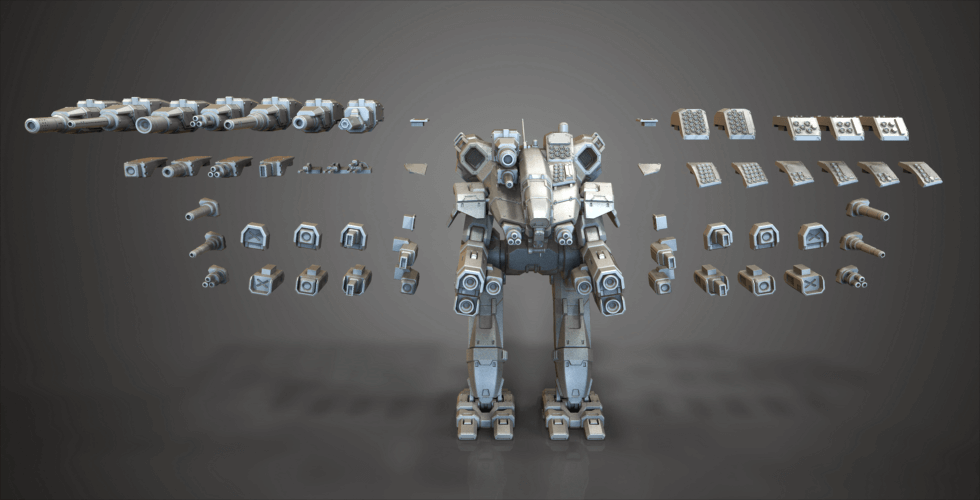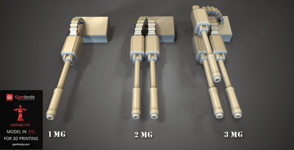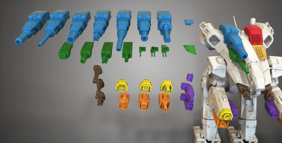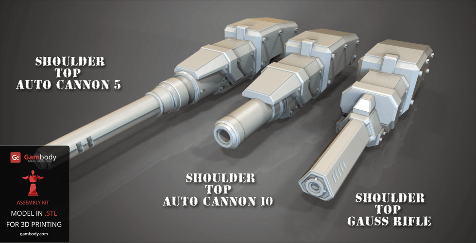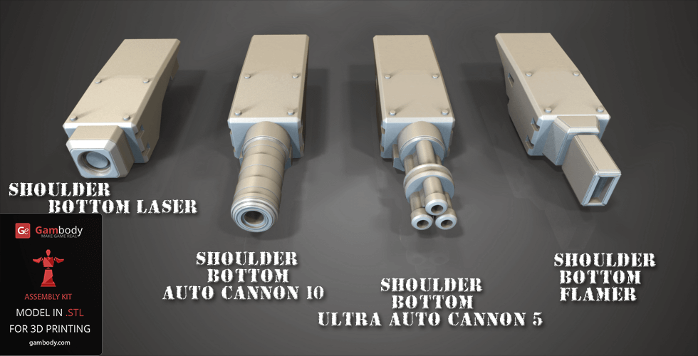 All these guns are mountable on your regular Marauder Mech 3D model. Replacing is simple and fuss-free, thanks to the special fitting slots.