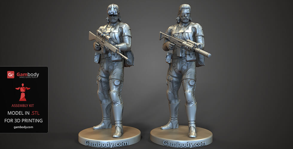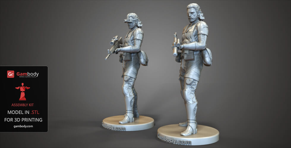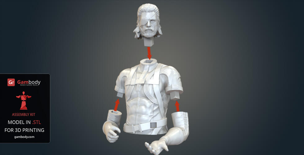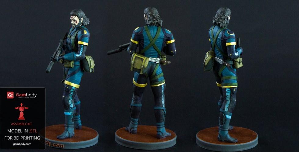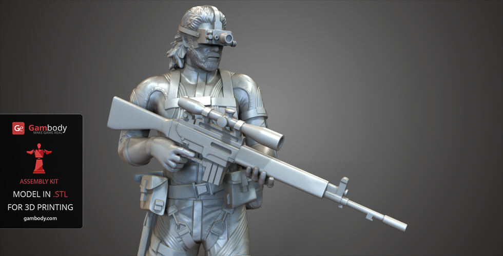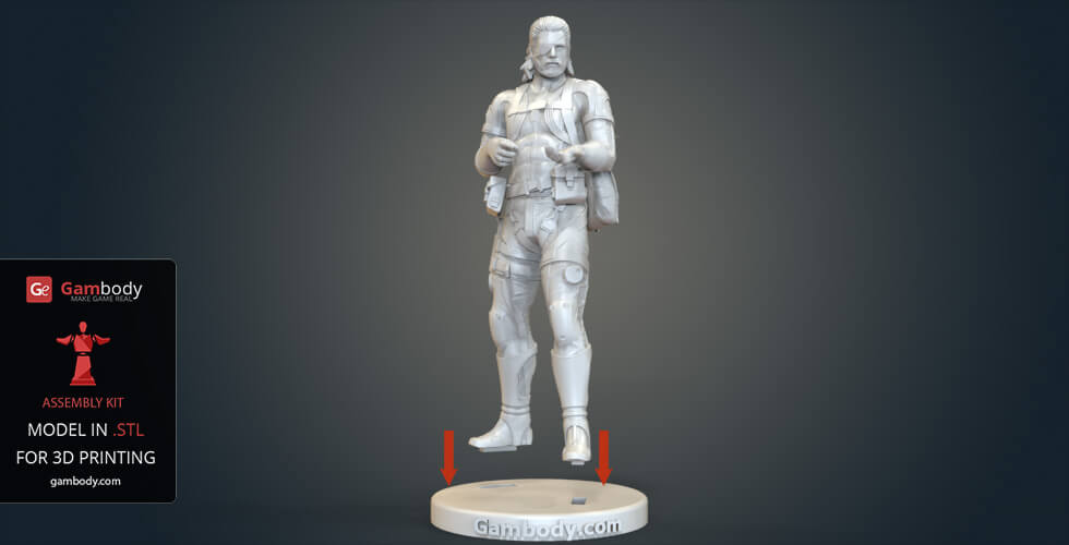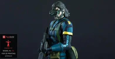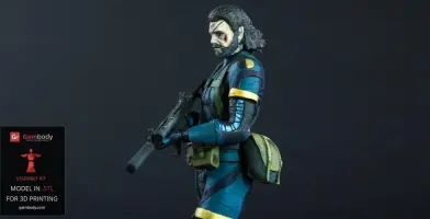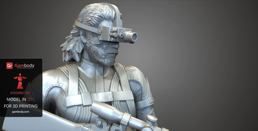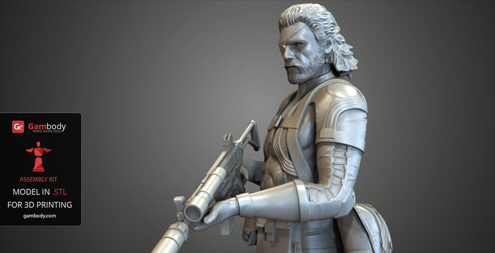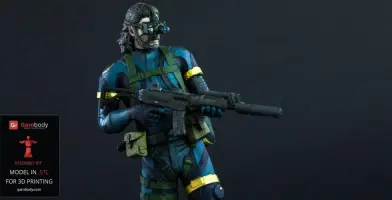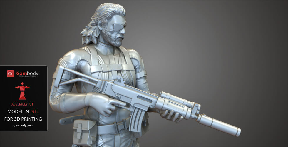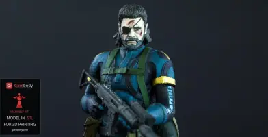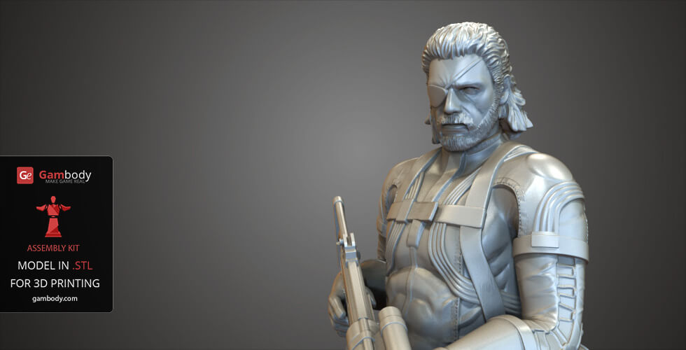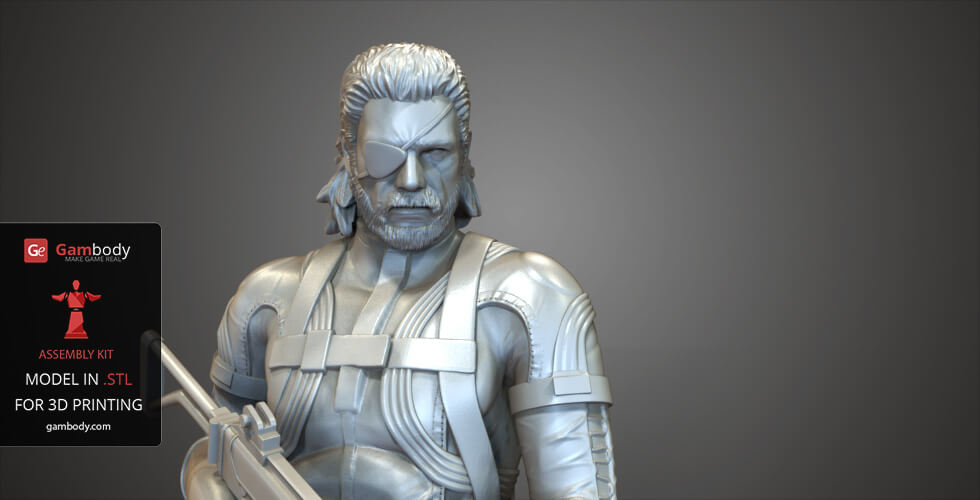 Big Boss 3D model captures the video game character’s looks. The model is created in Autodesk Maya 3D modeling program and is saved in STL file format. The STL files underwent thorough checking and correction to ensure an accurate 3D printing experience.