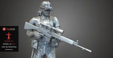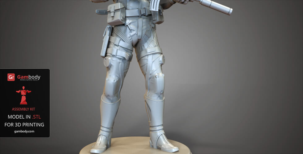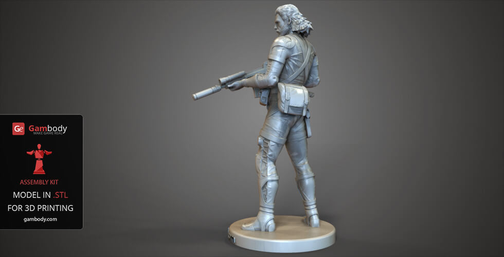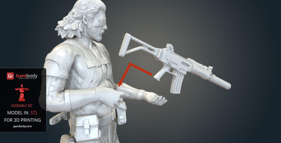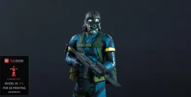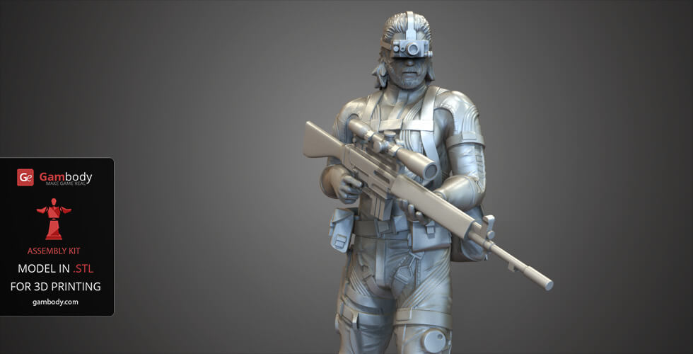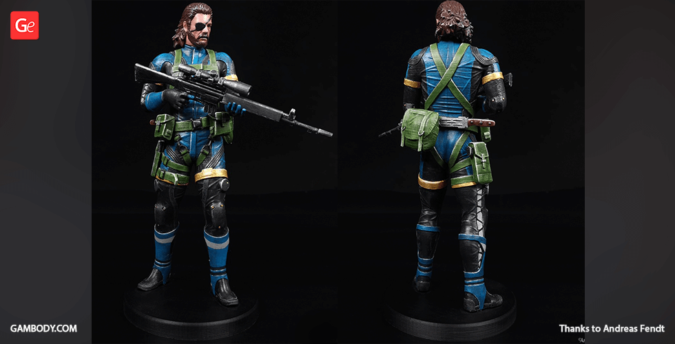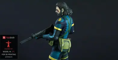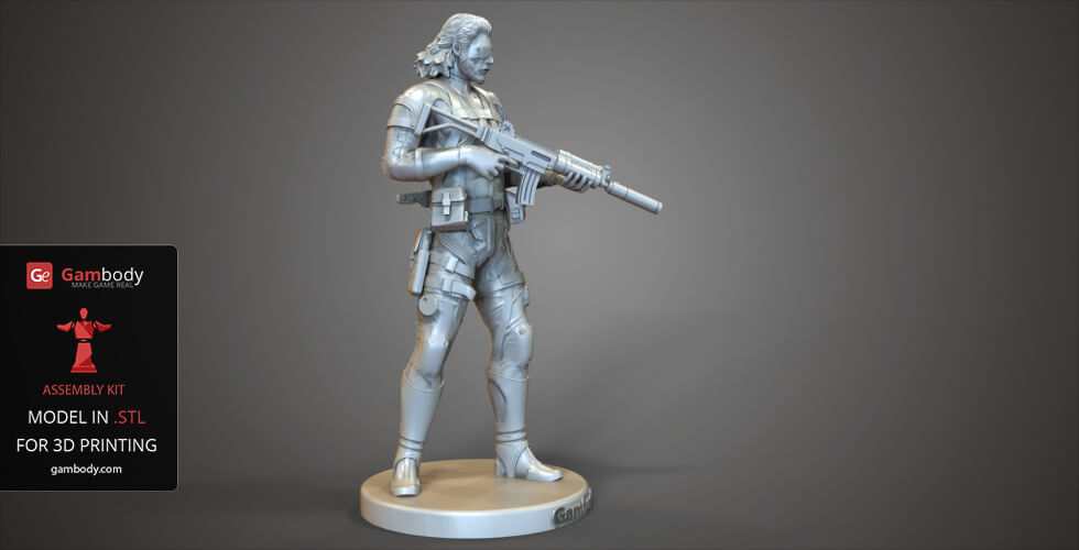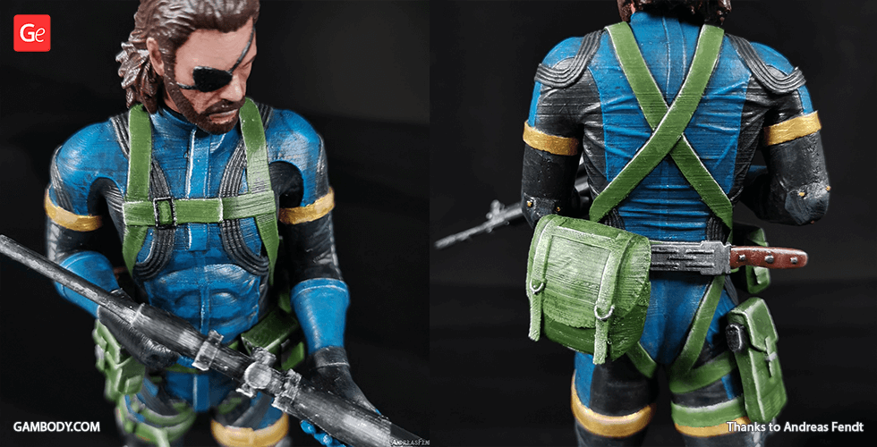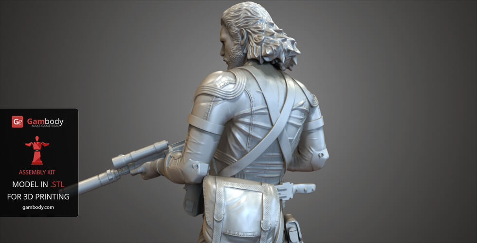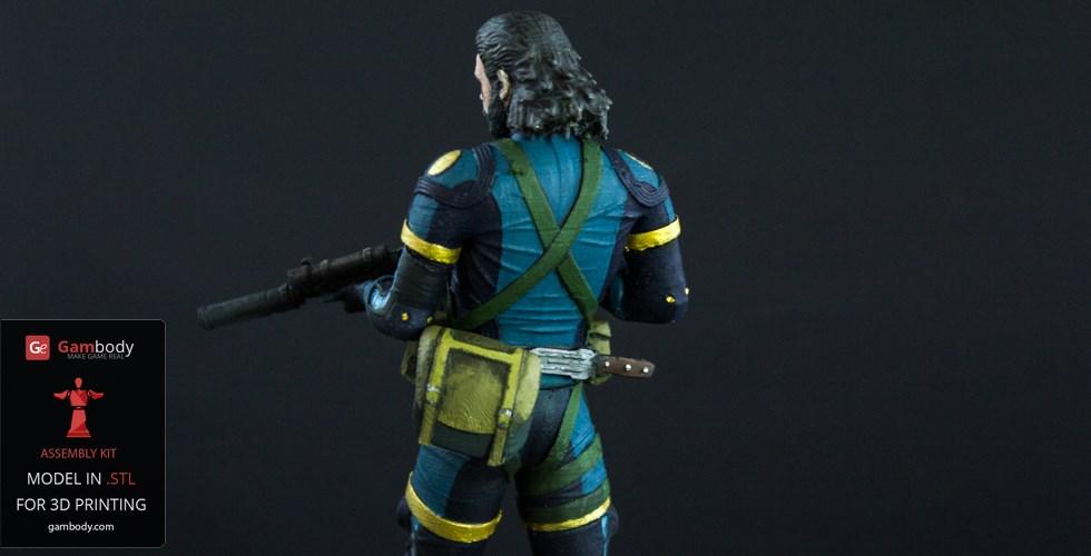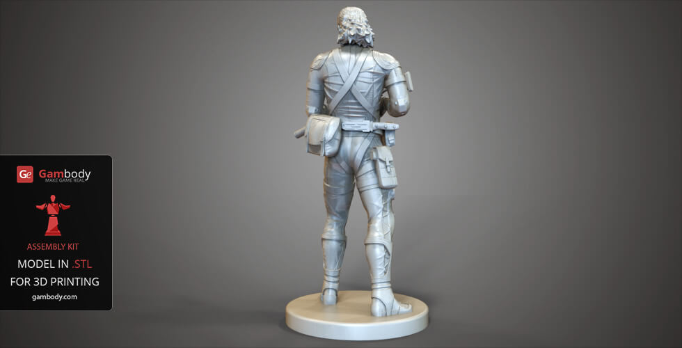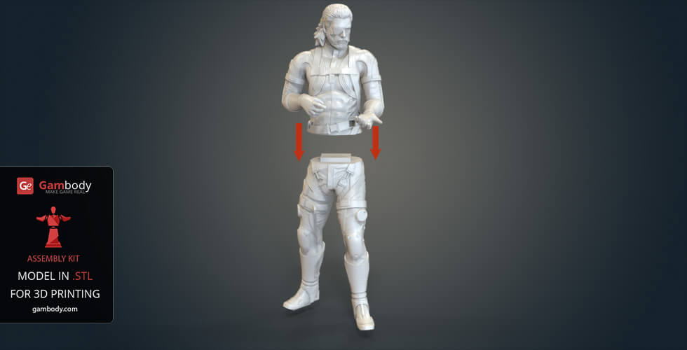Big Boss 3D model captures the video game character’s looks. The model is created in Autodesk Maya 3D modeling program and is saved in STL file format. The STL files underwent thorough checking and correction to ensure an accurate 3D printing experience.