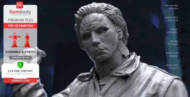 - STL files of Michael Myers 3D Model for 3D printing which consist of 46 parts;- 4 versions of files for this model for FFF/FDM, DLP/SLA, DLP/SLA Eco and SLS;- High-poly detailed figurine of Michael Myers;- Detailed settings that we provide as a recommendation for Cura , Simplify3D and Slic3r for the best print;- Full technical support from the Gambody Support Team.