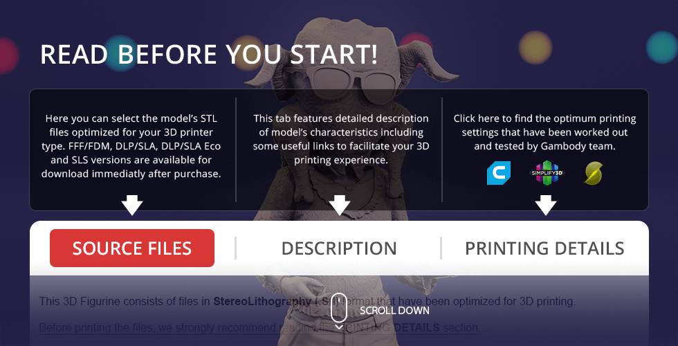 Before printing the files, we strongly recommend reading the PRINTING DETAILS section.