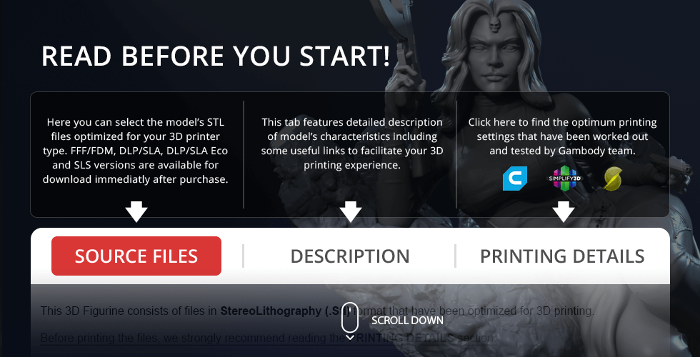 Before printing the files, we strongly recommend reading the PRINTING DETAILS section.