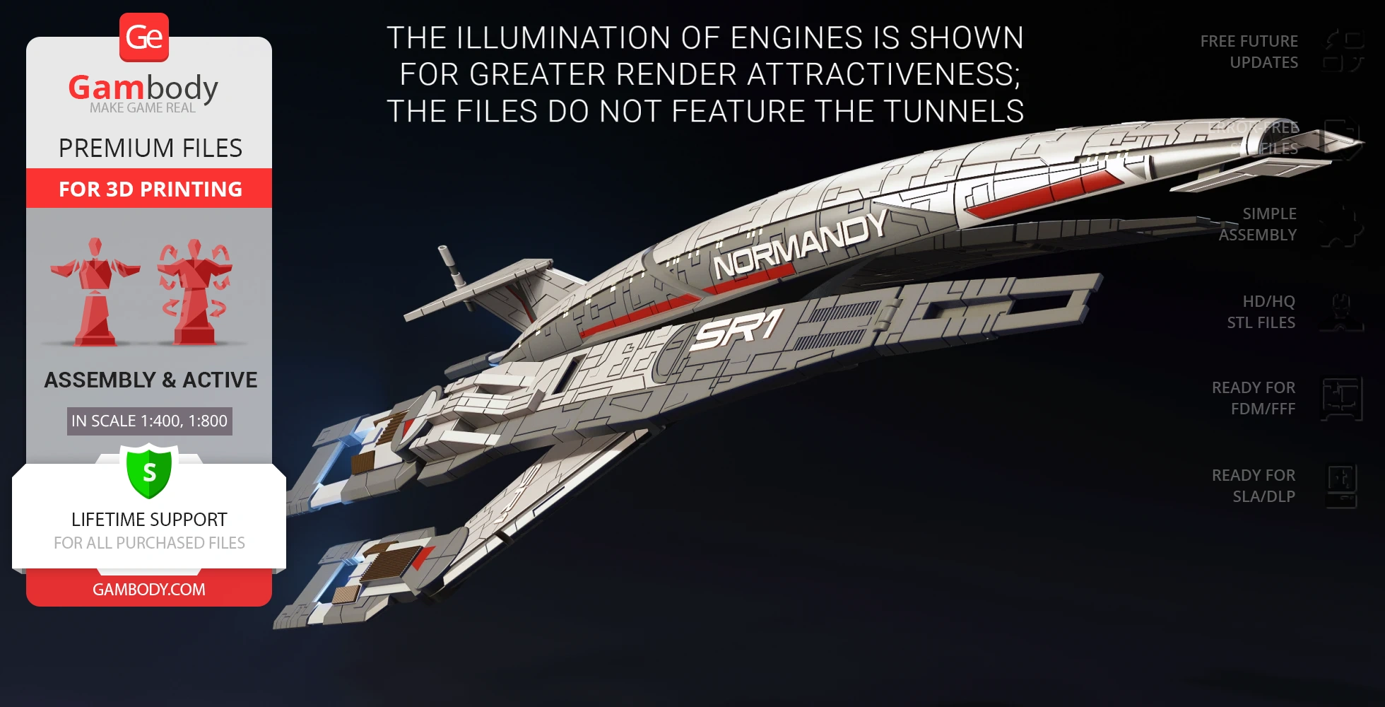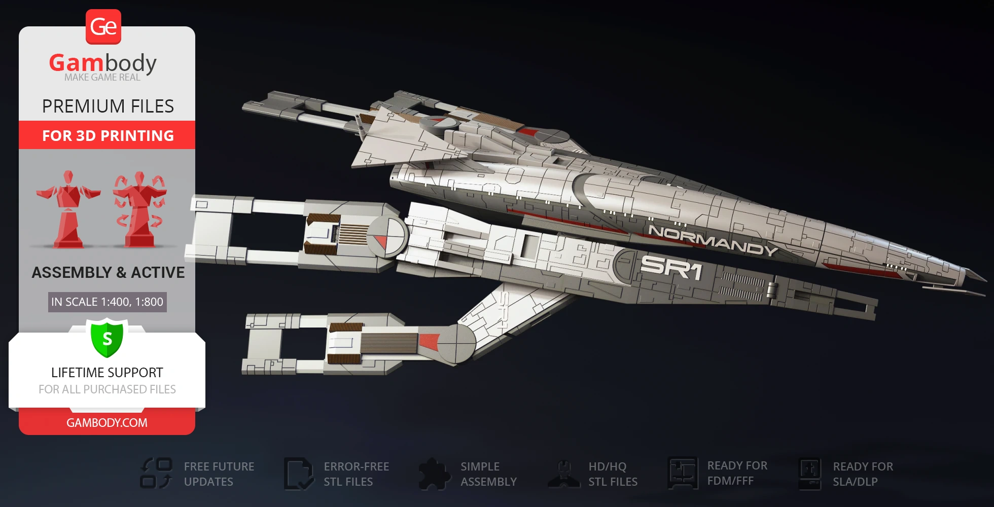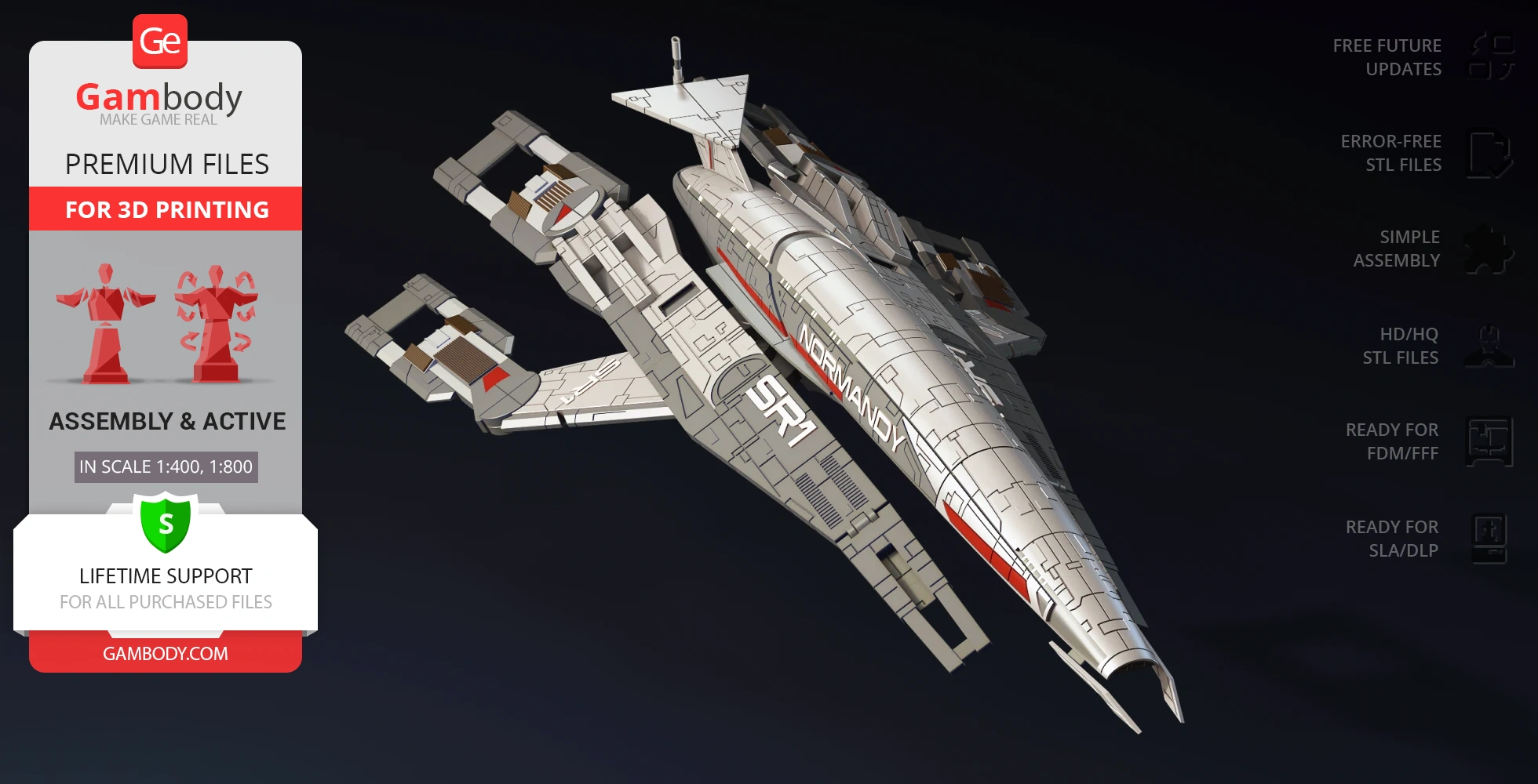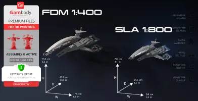 - 2 versions of Normandy SR-1 STL files for FFF/FDM and DLP/SLA - files for all versions are available for download after the purchase;