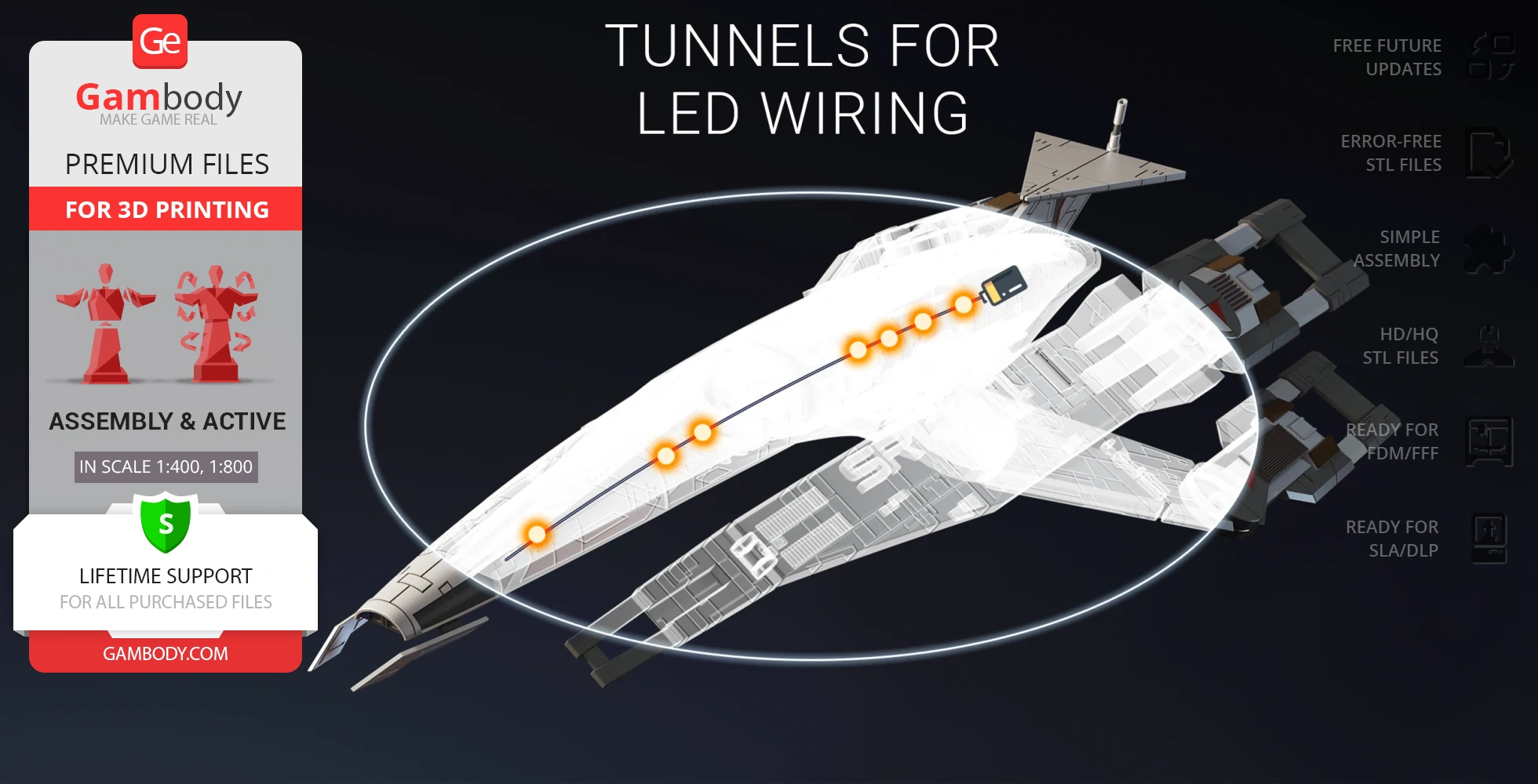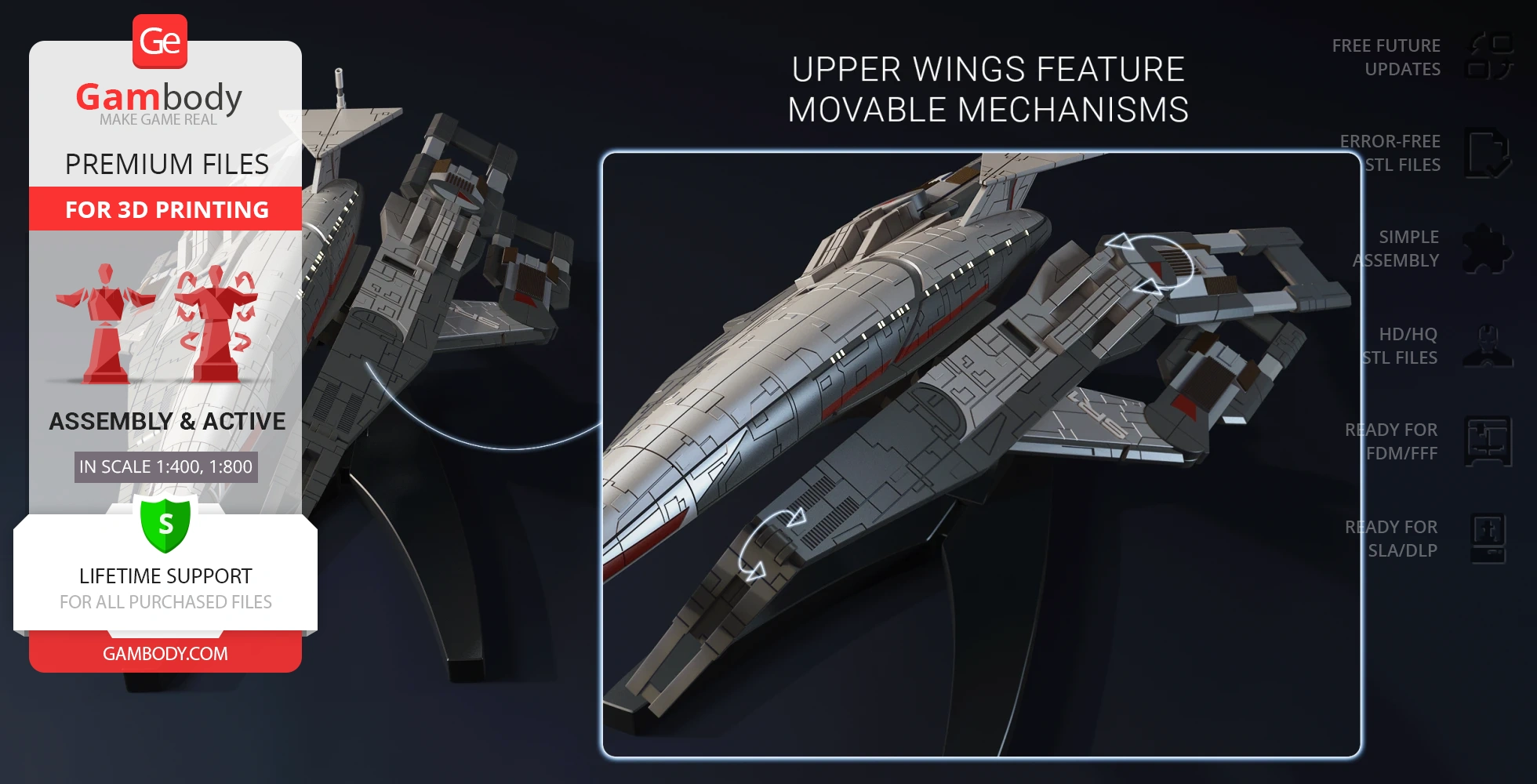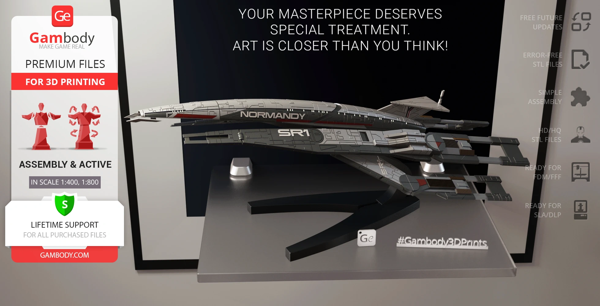 - 2 versions of Normandy SR-1 STL files for FFF/FDM and DLP/SLA - files for all versions are available for download after the purchase;