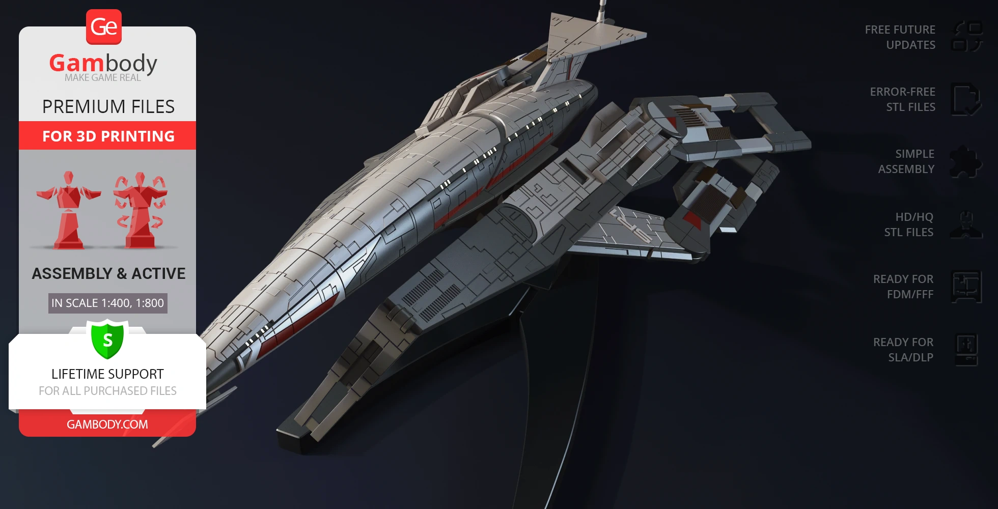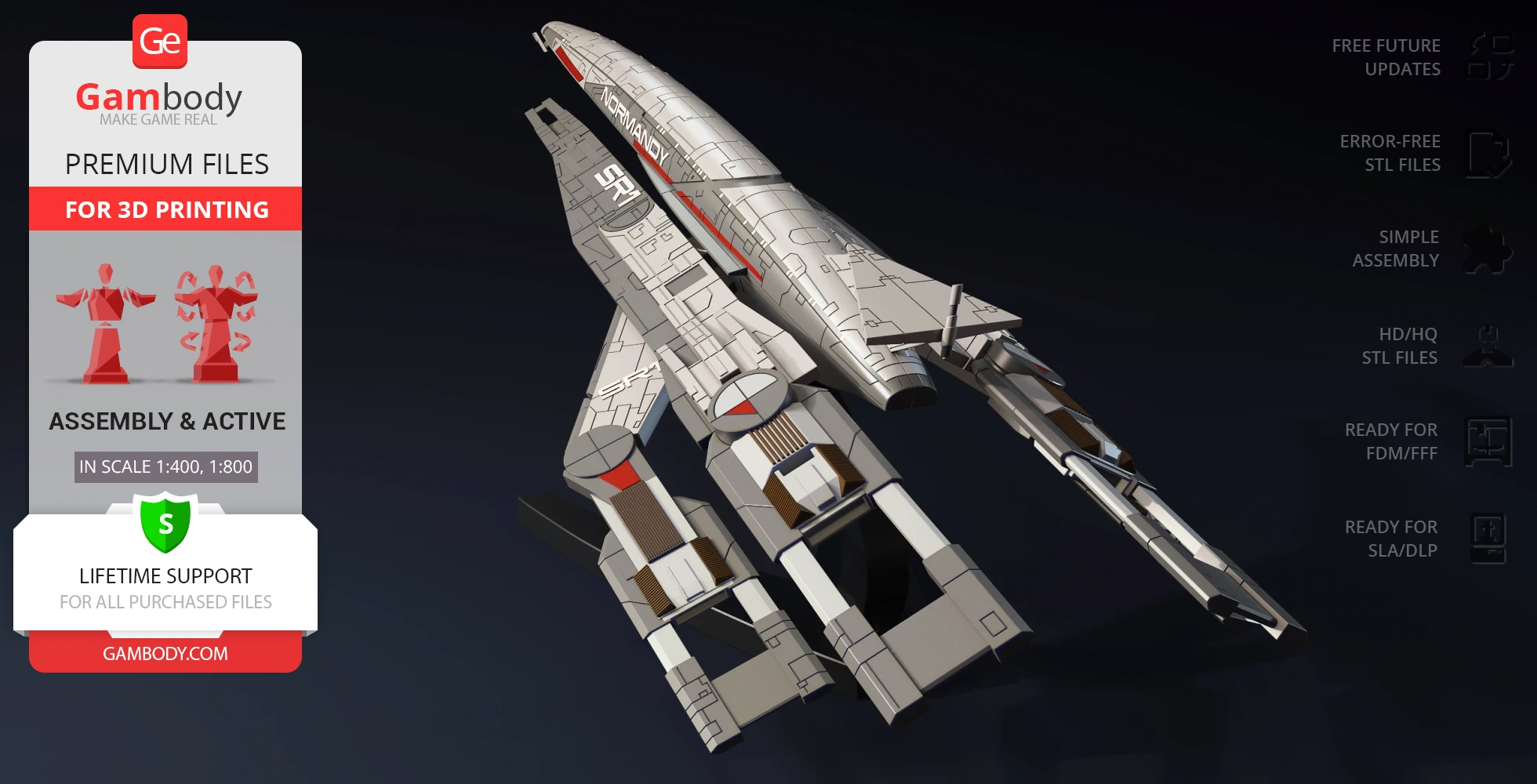 This 3D model of Normandy SR-1 consists of files in StereoLithography (.Stl) format that is optimized for 3D printing.