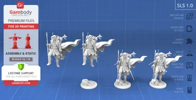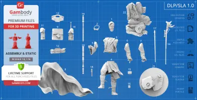 - The character’s head, hands, cape, pouches, and other equipment are provided as separate assembly parts;